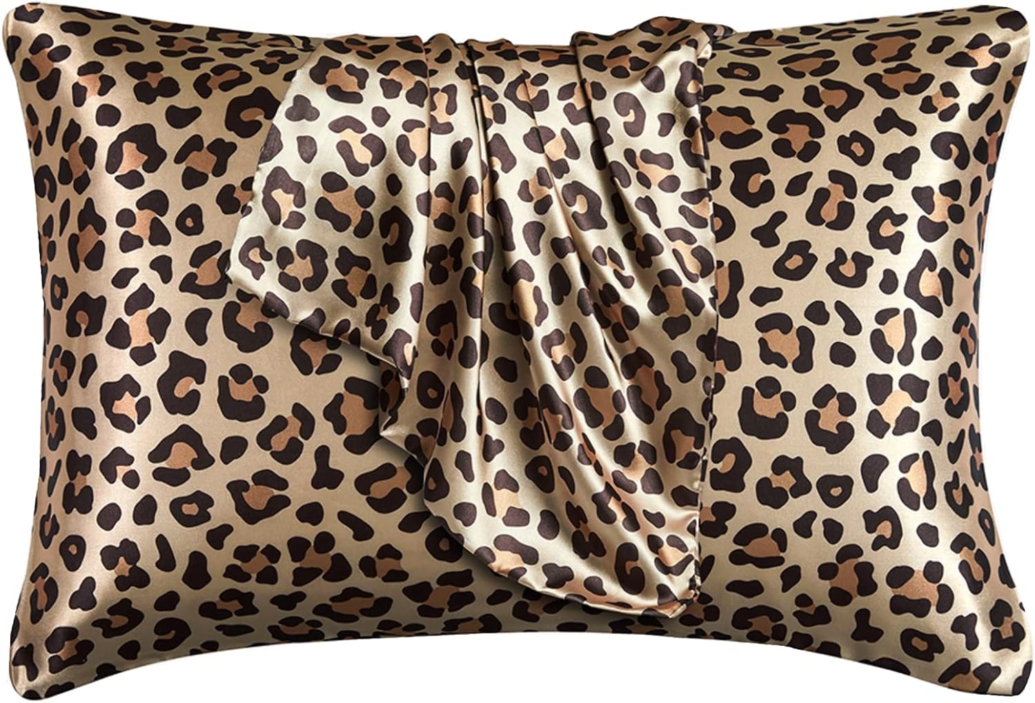 Silky Satin Toddler Pillowcases Pack of 2, 13x18 Inches Cheetah Print Travel Pillowcases with Envelope Closure, Small Kids Pillow Cases Covers, Gold Leopard