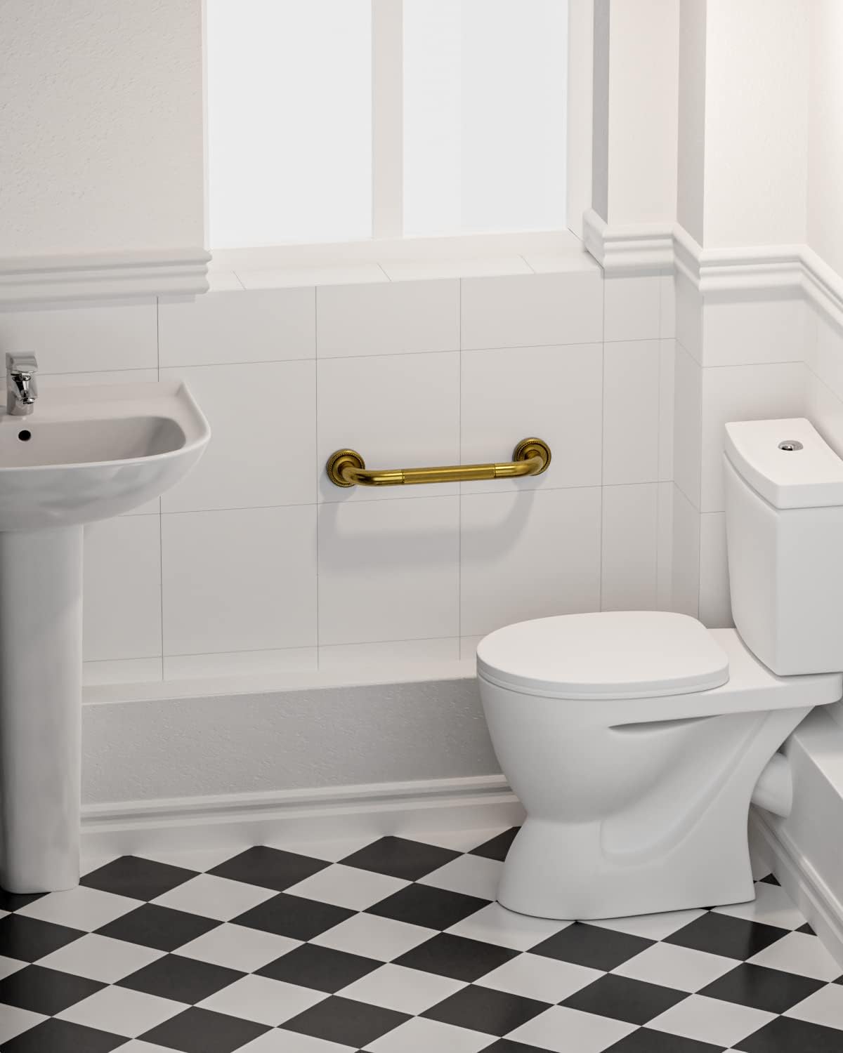 - Use 12 inch gold knurled anti slip safety grab bars in the bathroom, kitchen, along stairways, or in the laundry room for additional fall prevention, especially for the handicap, elderly, pregnant women, and children. Not only apply to use as bath shower grab bar, but also can hold clothing,etc.