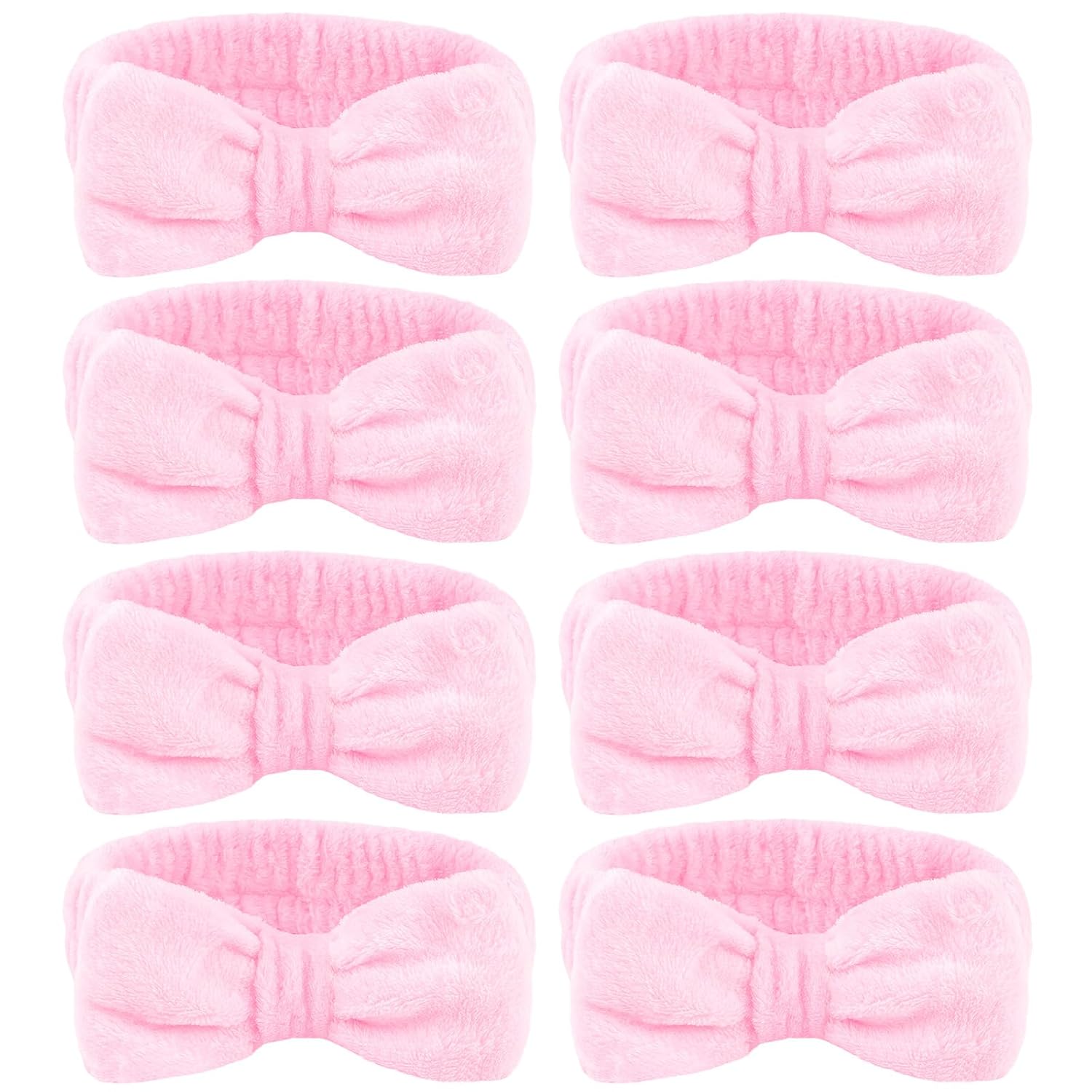 Ondder Spa Headband for Washing Face 8 Pack Pink Skincare Headbands for Women Girls Terry Cloth Cute Bow Head Bands