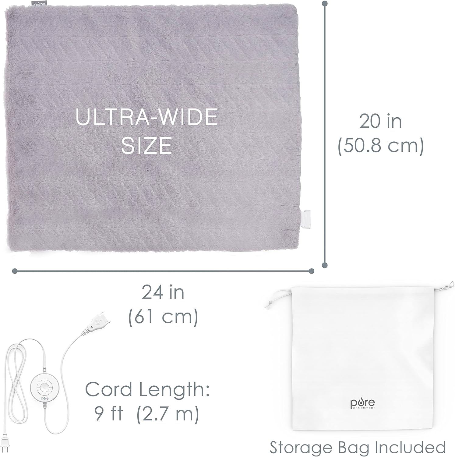 Pure Enrichment PureRadiance Ultra-Wide Heating Pad - 6 Heat Settings, Soft Faux Fur, 20" x 24", Machine Washable