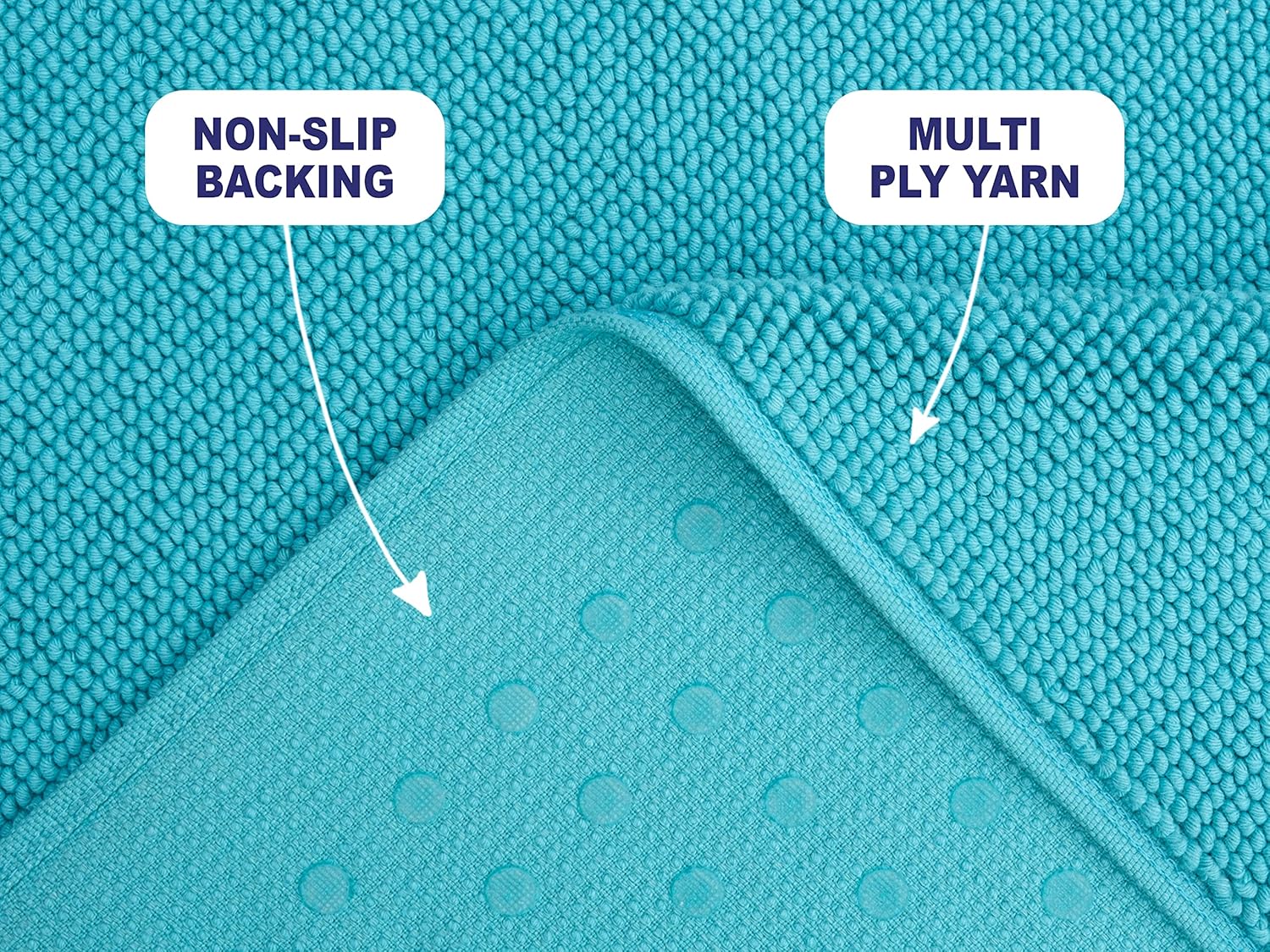 American Soft Linen Bath Rug, 20 in 34 in 100% Cotton Bath Mats Rugs for Bathroom, Slip Reducer Washable Shaggy Form Area Rugs, Turquoise Blue Bath Rug