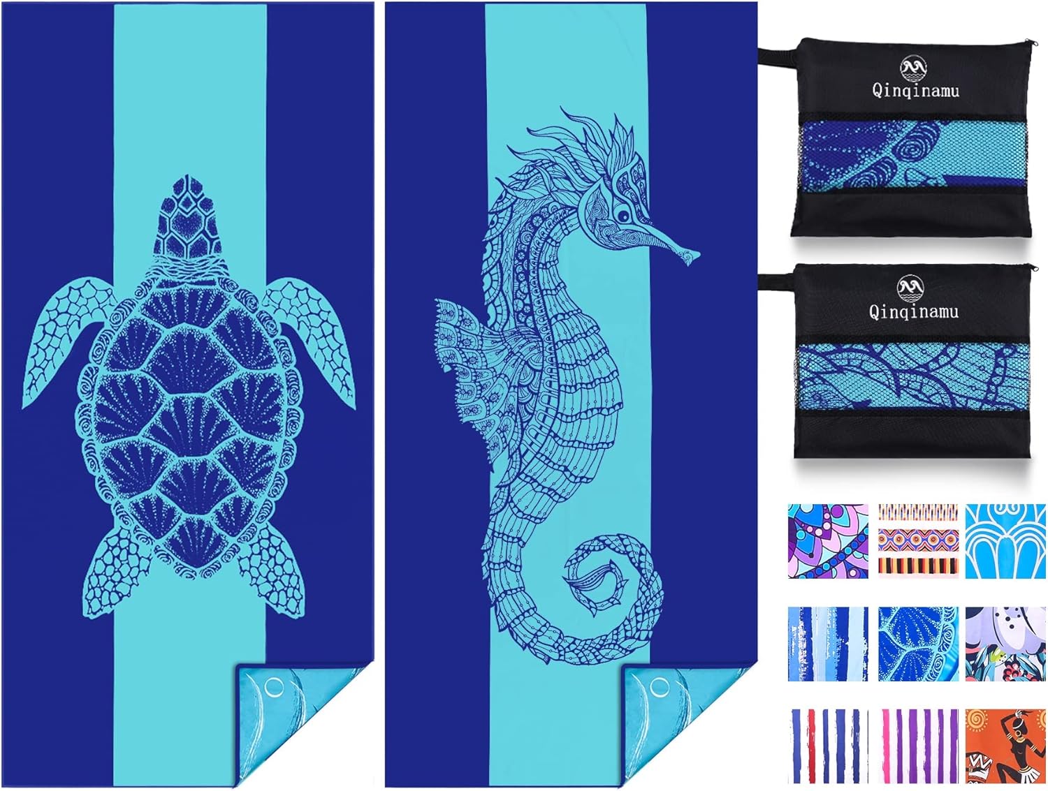 - ABSORBENT AND LIGHTWEIGHT : Microfiber beach towels contain millions of individual fibers that absorb up to 5 times their own weight. Save yourself the embarrassment and cold after bathing or swimming in the pool or beach. You can rest or wrap your body on it, or dry easily from head to toe. We feature compact fabric that you can easily fold to the perfect size to maximize luggage space and pack other items for easy portability