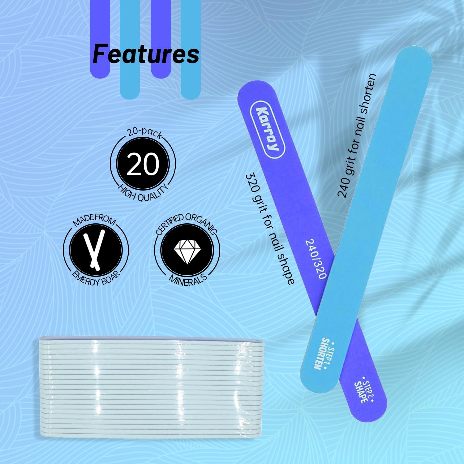 Nail File and Buffer for Natural Nails Dual Sided 2 Steps Shorten and Shape Nail Tools 20pcs 240/320 Grit