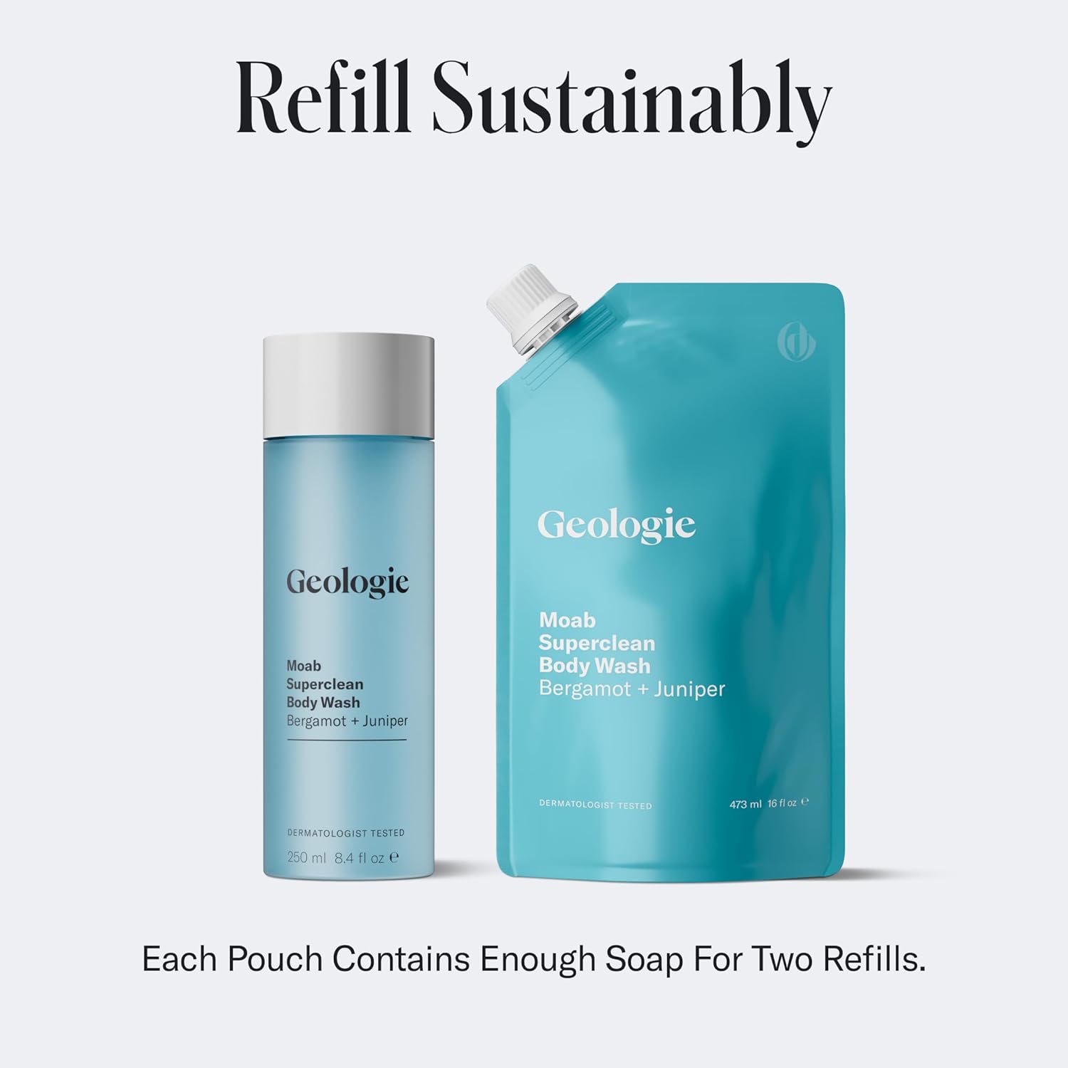 - SLEEK & ECO-FRIENDLY DESIGN: Our stylish, modern bottle not only enhances your bathroom aesthetics but also features a convenient twist top dispenser. The eco-friendly refill pouches reduce plastic waste and make it easy to ensure you never run out of your best body wash.
