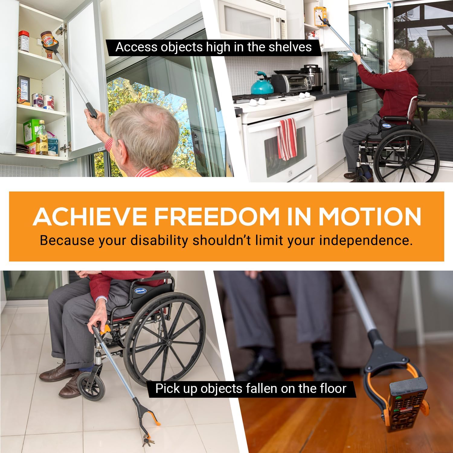 - Grabbers for Disabled & Seniors: Extra Long Grabber Tool Designed for the Elderly and Handicapped, Equipped with Clip-on Tubes for Walkers, Wheelchairs, and Beds - Achieve Easy Access While Seated.