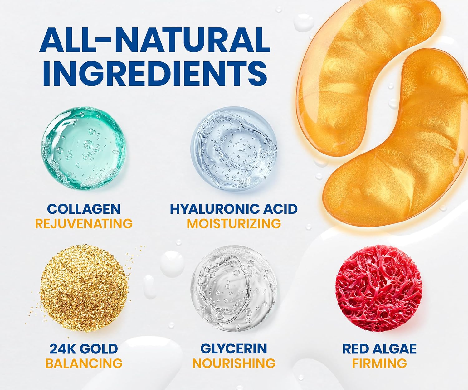 - POWERFUL INGREDIENTS FOR MAXIMUM RESULTS - Packed with Vitamin C, Hyaluronic acid, Collagen, Pearl extract, and Red algae, these under eye patches for women are formulated to hydrate and rejuvenate the delicate under-eye area. A gentle yet effective dark circles under eye treatment for all skin types.