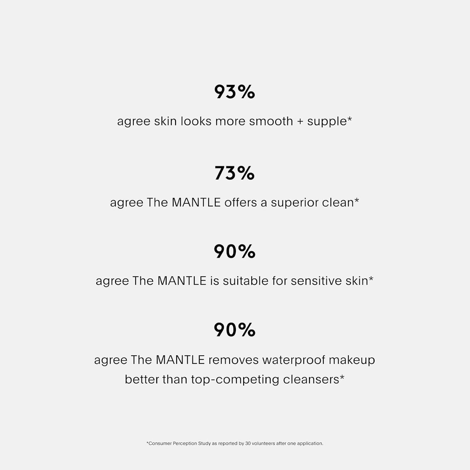 - MAKEUP-REMOVER: The MANTLE melts away water- and oil-soluble debris—including waterproof makeup, sunscreen, dirt, sweat, and pollutants—without stripping the skin, ensuring a deep cleanse without moisture barrier impairment or uncomfortable tightness