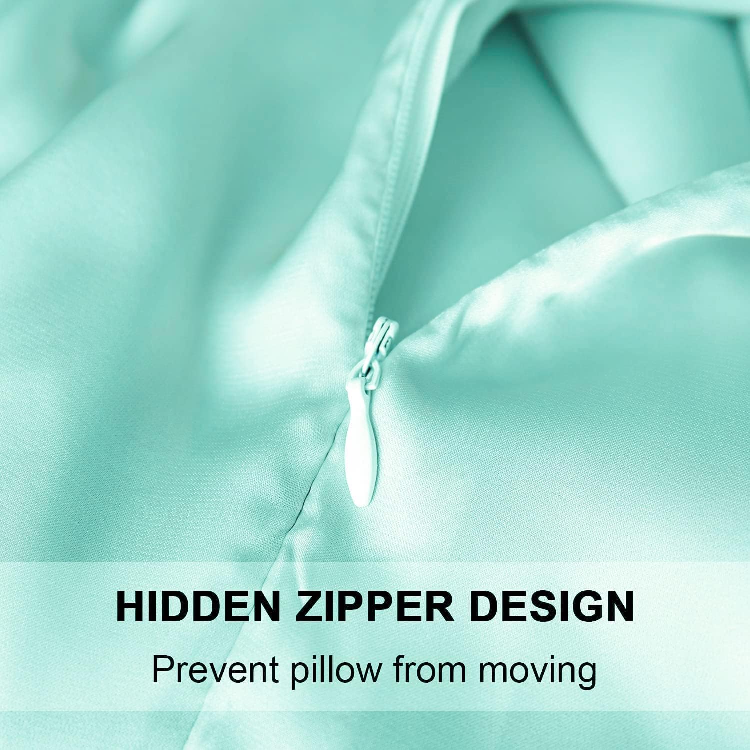 Juwenin Bedding,Super Soft and Luxury Silky Satin Pillowcase with Zipper (Silky Satin Pillow Case for Hair) Set of 2 (Aqua, King(20''x36'))