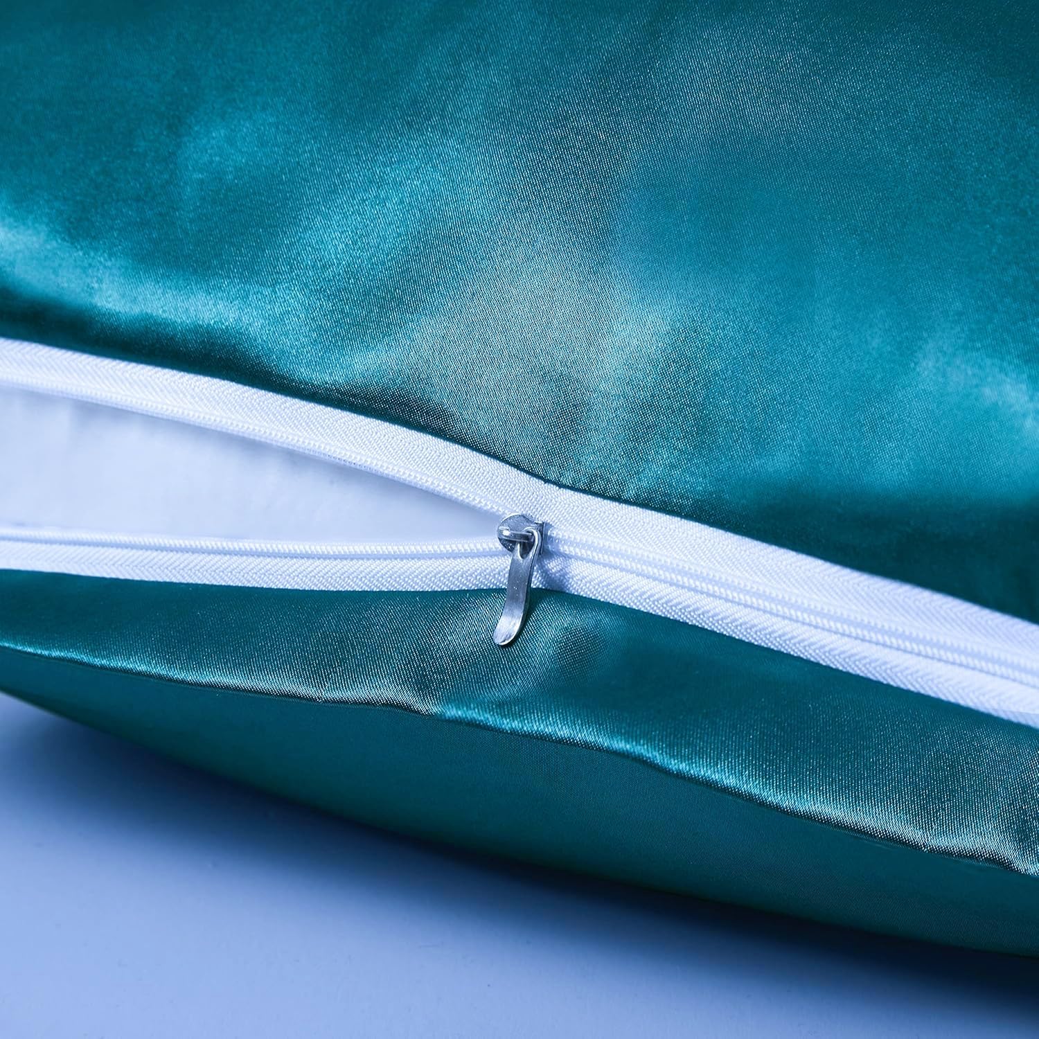 Juwenin Bedding,Super Soft and Luxury Silky Satin Pillowcase with Zipper (Silky Satin Pillow Case for Hair) Set of 2 (Teal, King(20''x36'))