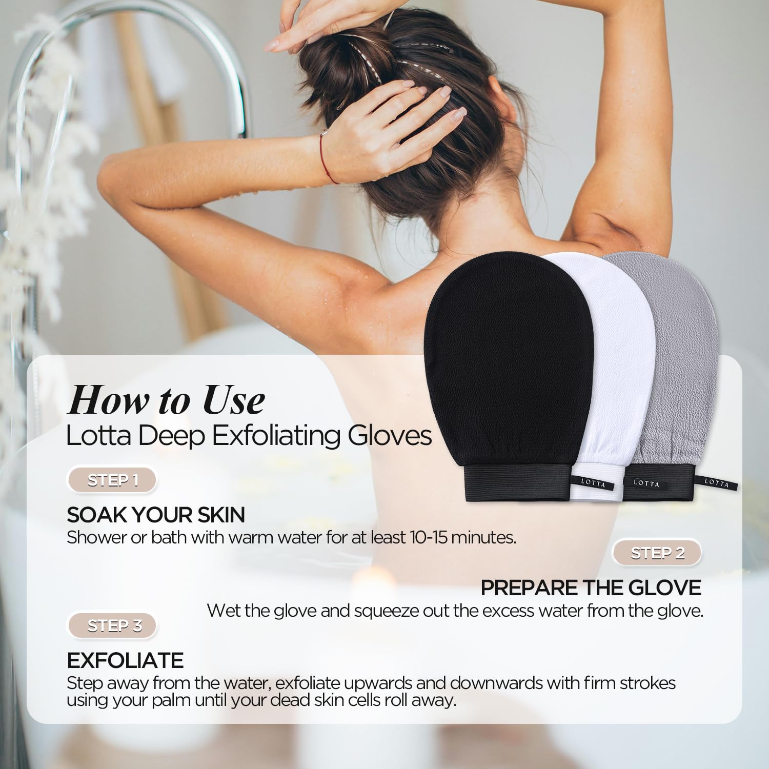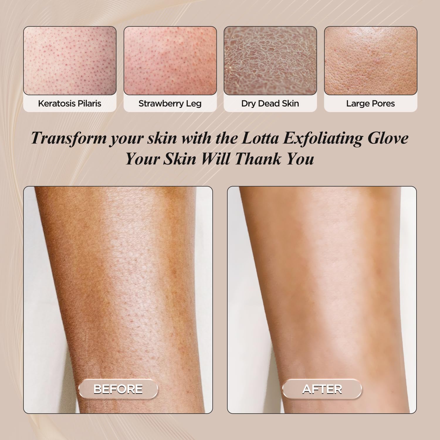 LOTTA Exfoliating Gloves for Dead Skin Removal & Skin Cell Renewal, Vegan Viscose Body Scrubber Mitt for Self-Tanning & Keratosis Pilaris, Kessa Korean Washcloth for Bath
