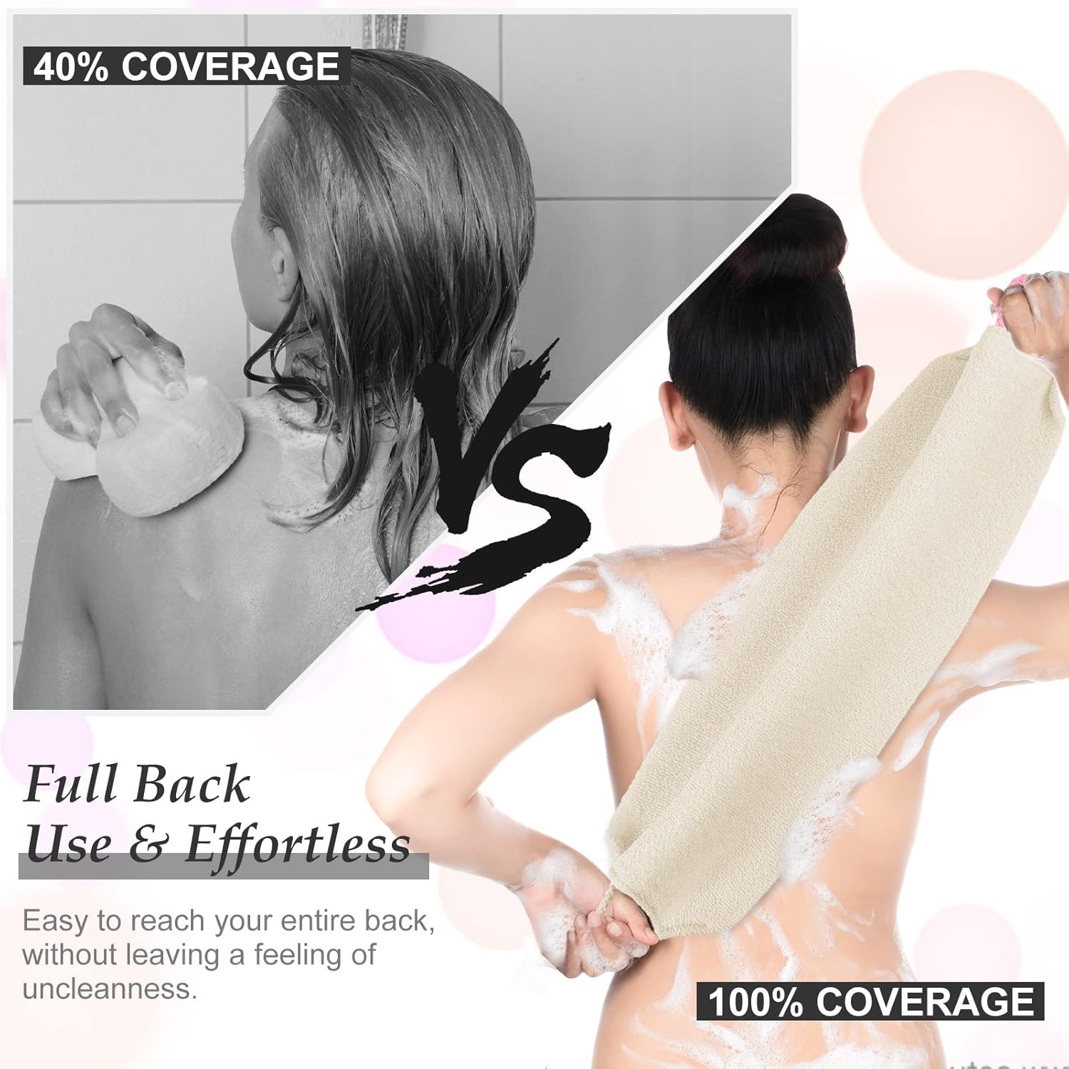 - Versatile Exfoliating Back Scrub: combined with handles at both ends, the exfoliating body scrubber can reach your back with ease, in addition, this washcloth for back is also suitable for most inaccessible shoulders, back, and lower back areas, helping rinse dirty easily
