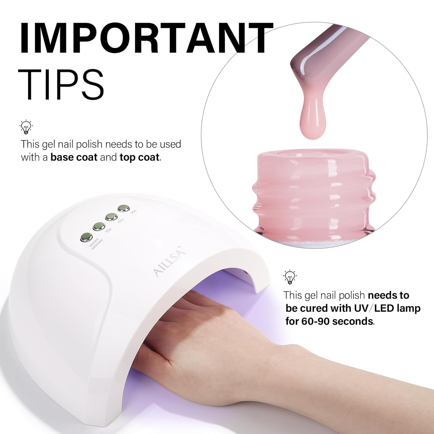 - JELLY STYLE - AILLSA gel nail polish nude colors creates an understated yet premium translucent nude style for you.It can be used for daily life, work and dating. You can also use it as a base gel to create your own French nail art.