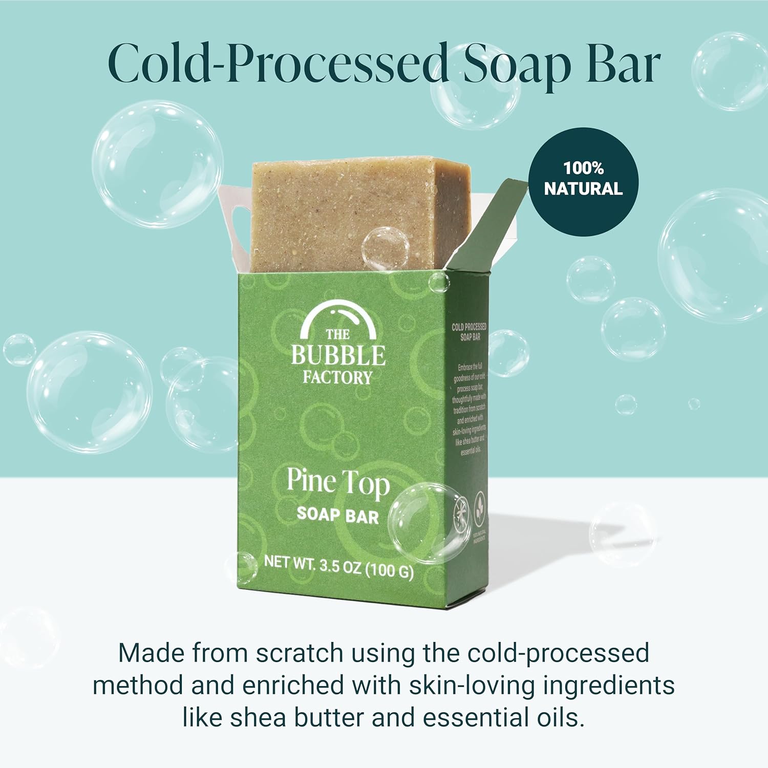 The Bubble Factory Handmade Natural Bath & Body Soap Bar, Vegan, All-Natural, Palm Oil Free, Made in USA with Shea Butter + Essential Oils, Pine Top, 3 Bars