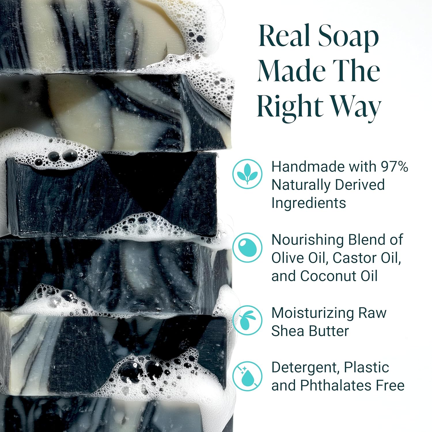 Handmade Soap, All Natural Soap for Women & Men, Hand, Bath & Body Natural Bar Soap, Vegan, Palm Oil Free, Made in USA with Shea Butter + Essential Oils, Charcoal Mud Tea Tree, 3 Bars