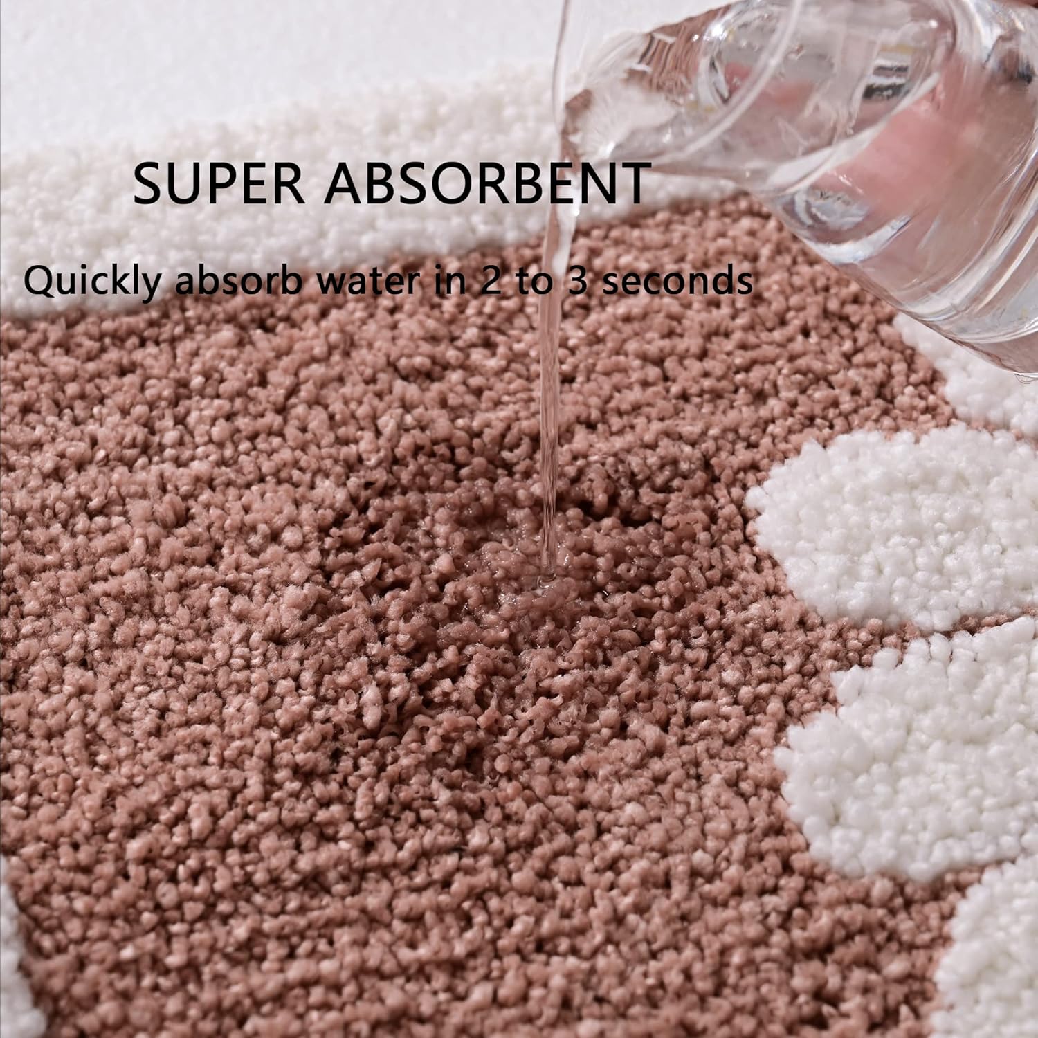 - BATHROOM RUGS COZY PLUSH TOUCHING: Bathroom Rugs These fluffy rug mat are made of 0.5 inch microfiber material. Strong Absorbent. Your feet will feel very soft when you step on Bathroom Rugs, just like walking on a cloud.Bathroom rug mats Bathroom Rugs is very suitable for wash basins, holiday homes, master bathrooms, children's bathrooms, and suites.