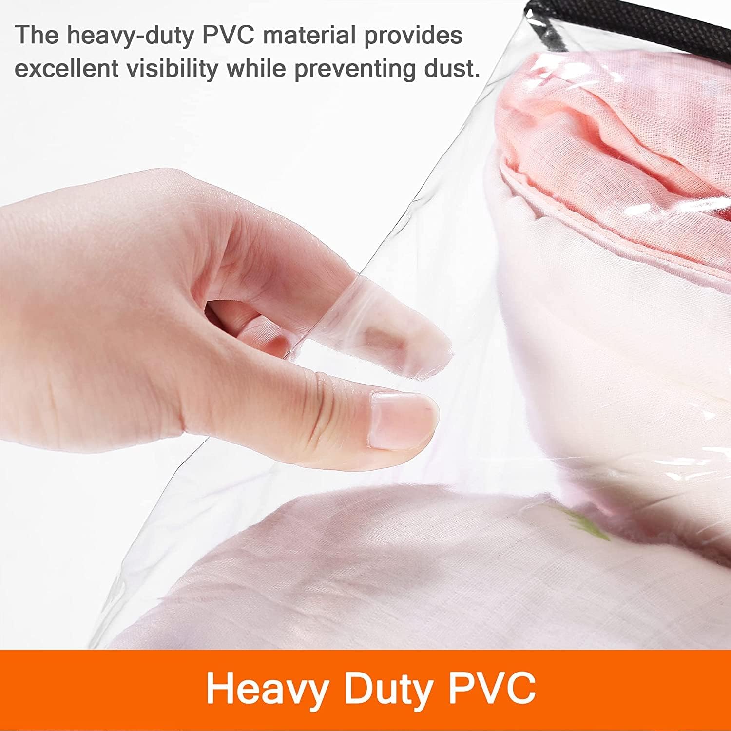 - 【UPGRADED MATERIAL】: Material of this storage bag is made of thick PVC. The transparent appearance allows you to see the internal structure directly and clearly, while also playing a waterproof and insect-proof effect. Keep your items safely