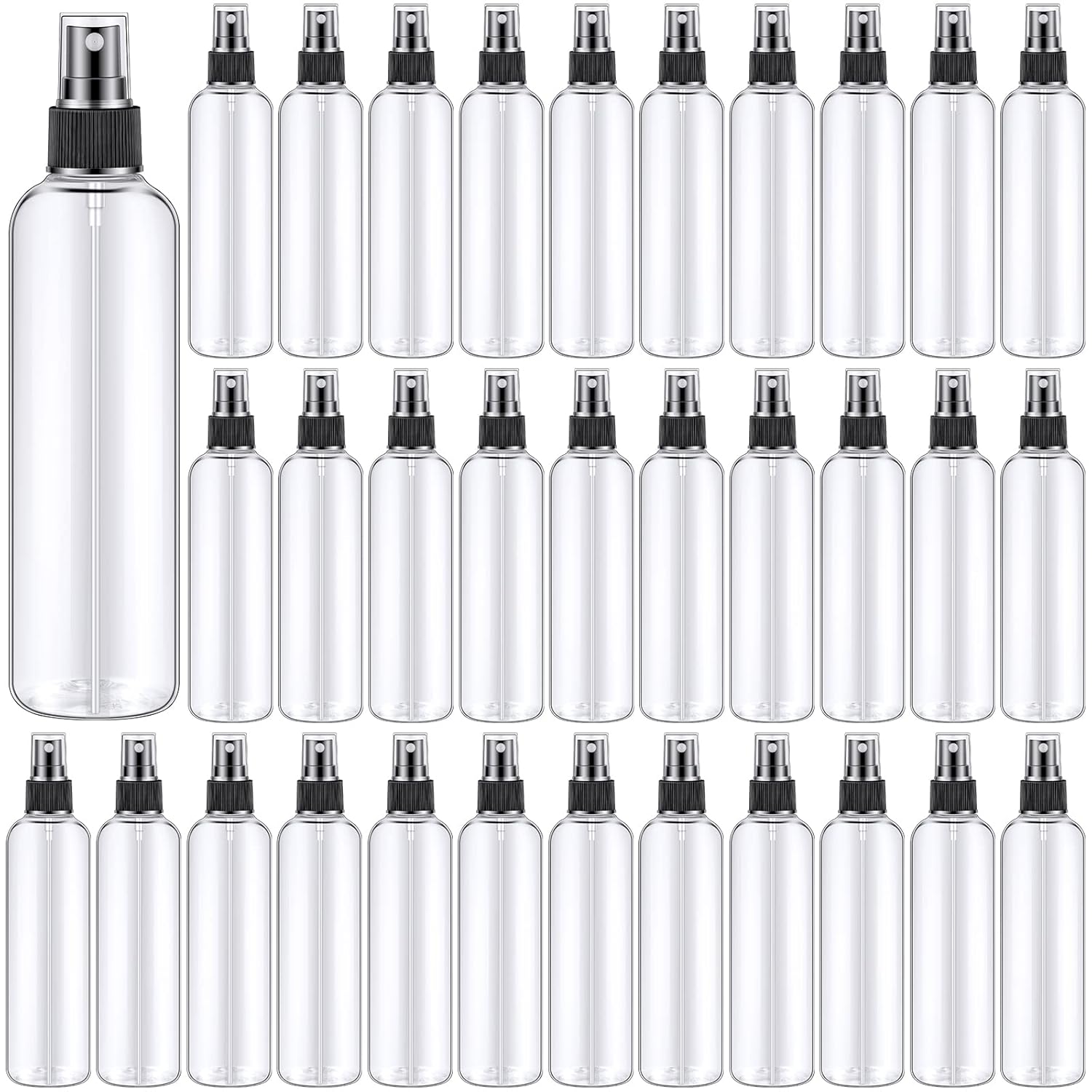 Eccliy 32 Pcs 8 oz Spray Bottles Fine Mist Cleaning Bottles Clear Empty Plastic Travel Sprayer Refillable Sprayer with Cap for Cleaning Solutions Oils Travel Perfumes(Black,Clear)