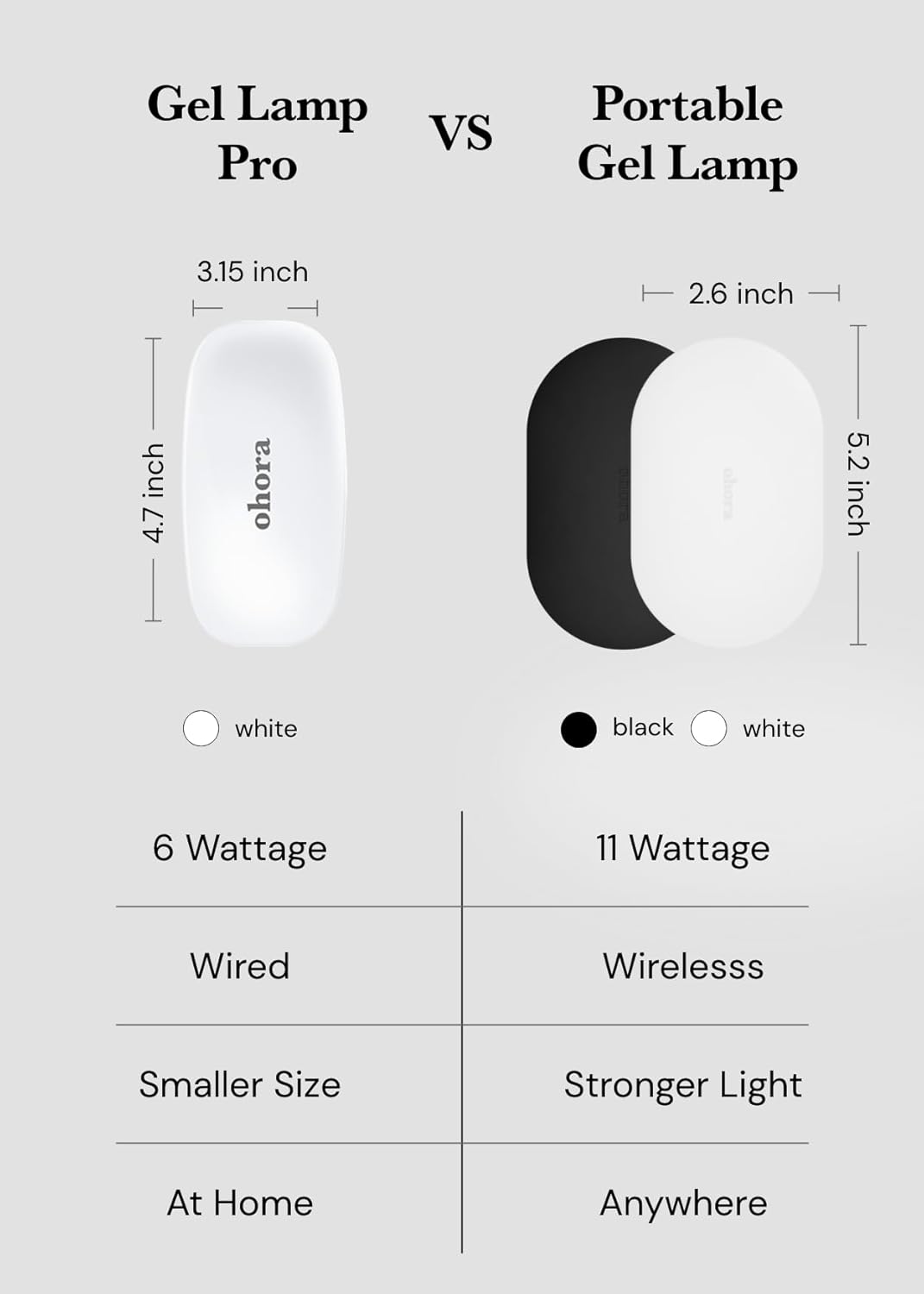 ohora Pro Portable Gel Lamp (Black) - 11W Max, Timer (60s), Portable Lamp for Curing Gel Nail Art, Polish, Stickers and Strips