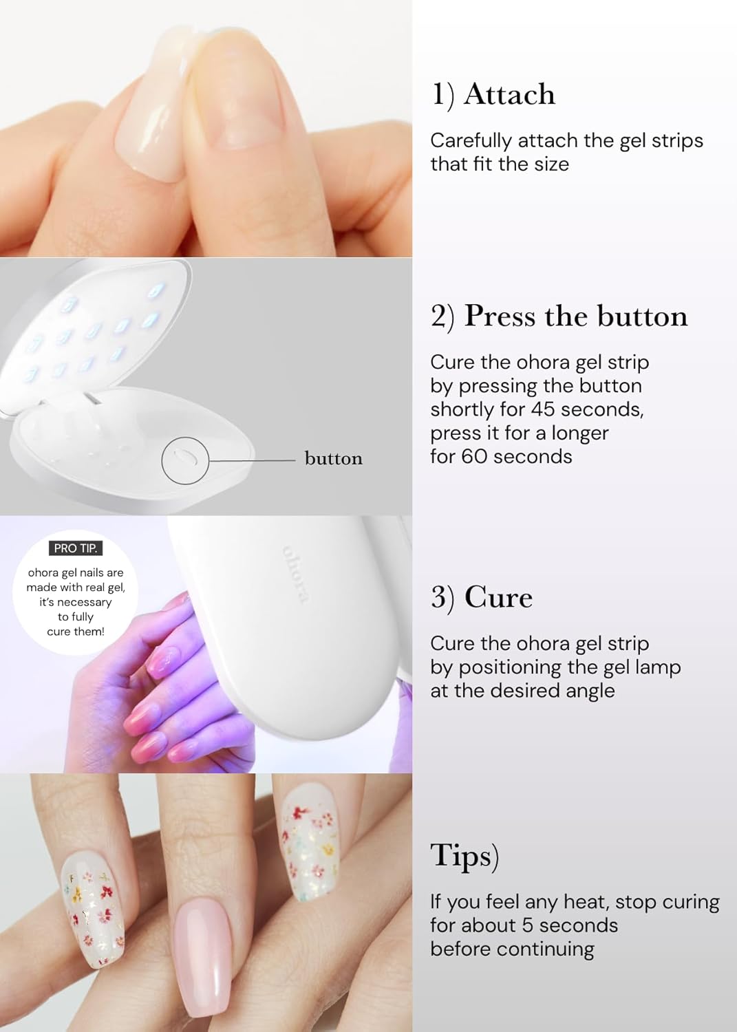- Complete Set of Nail Art Stickers - Curing is necessary to complete any gel manicure or pedicure. The process adds intense shine and seals nail strips into place. Cured nail strips will be budge-proof, smudge-proof, and look straight out of the salon.