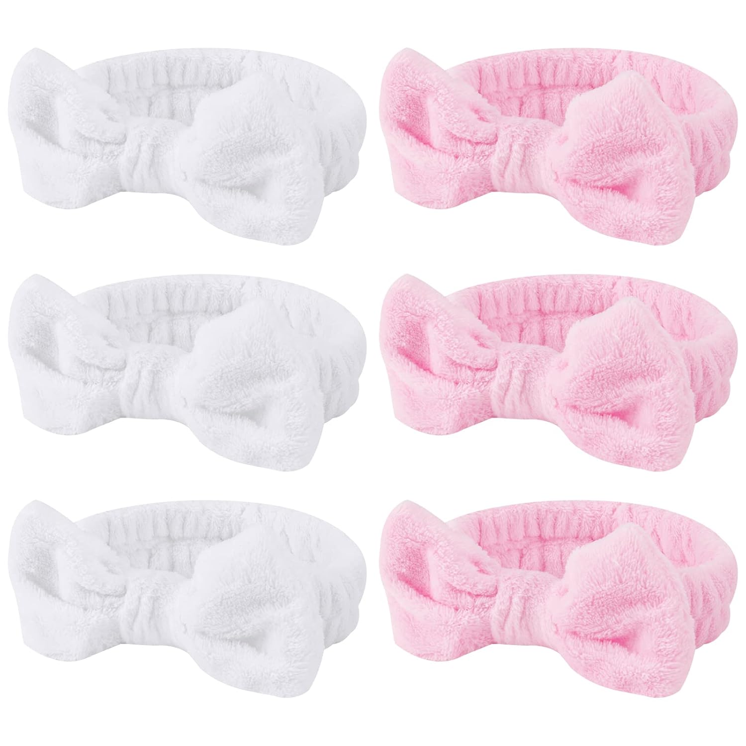 Casoty Spa Headband, 6 Pcs - Soft Coral Fleece Hair Band for Face Washing, Skin Care, Makeup, Shower, Yoga, with Bow Knot, One Size Fits All, Good Elasticity
