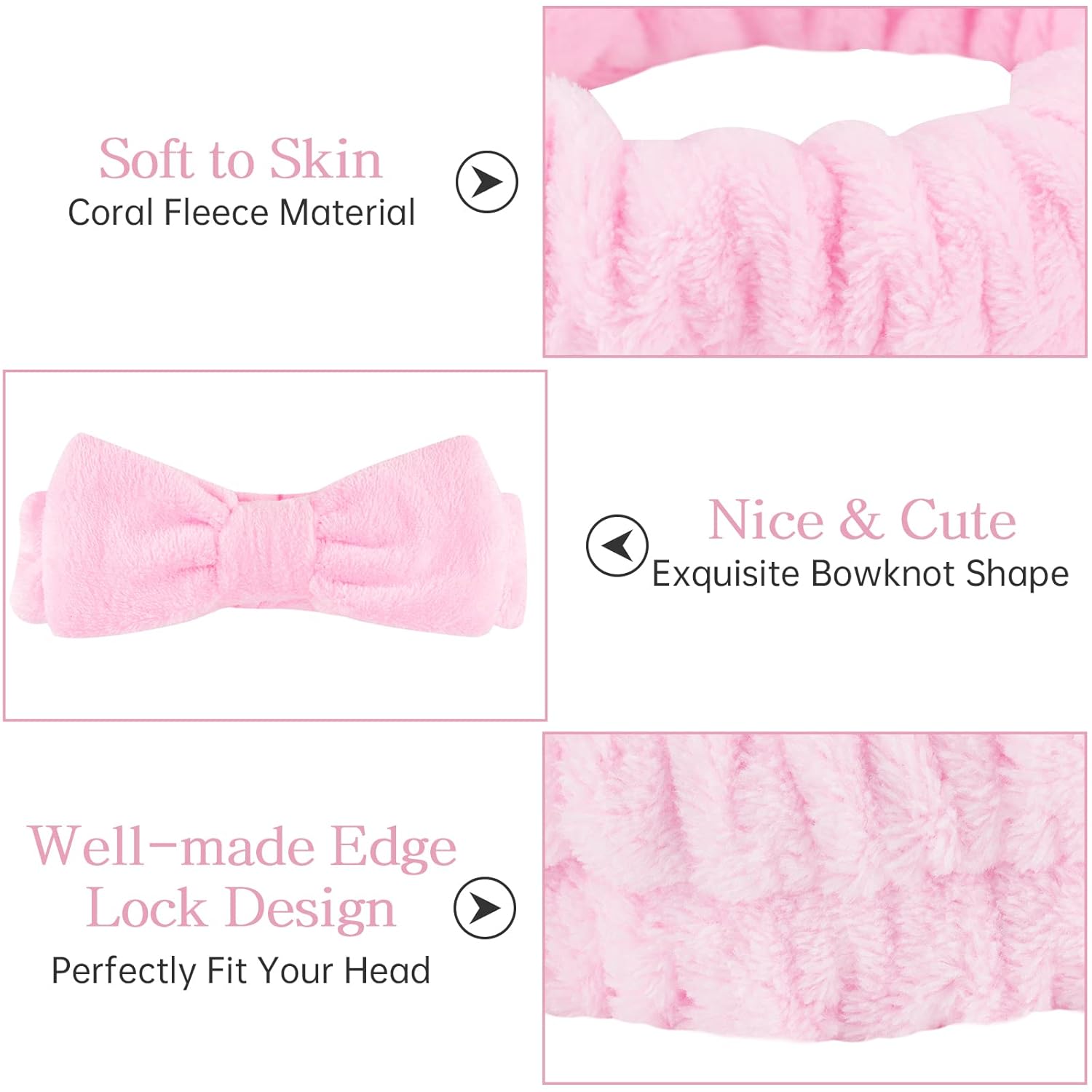 - Soft Material : The spa headband is made of soft coral fleece material, which is fluffy, soft and comfortable to wear