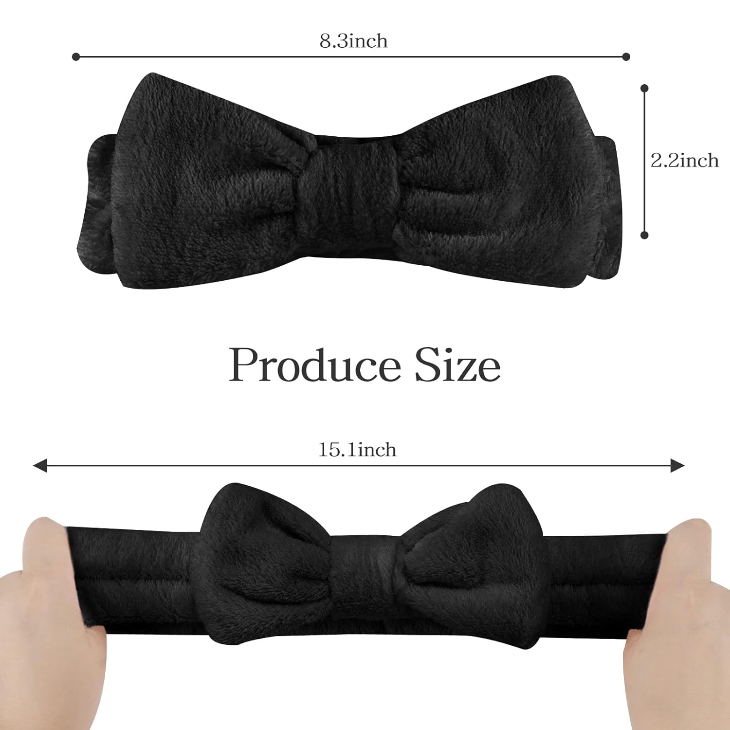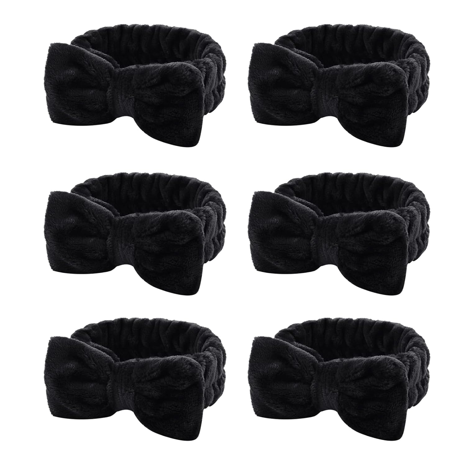 Casoty 6 Pcs Black Spa Headband, Bow Hair Band, Hair Band for Washing Face, Fuzzy Headbands for Women Girls, Soft Coral Fleece Skincare Headbands for Face Washing Shower Yoga