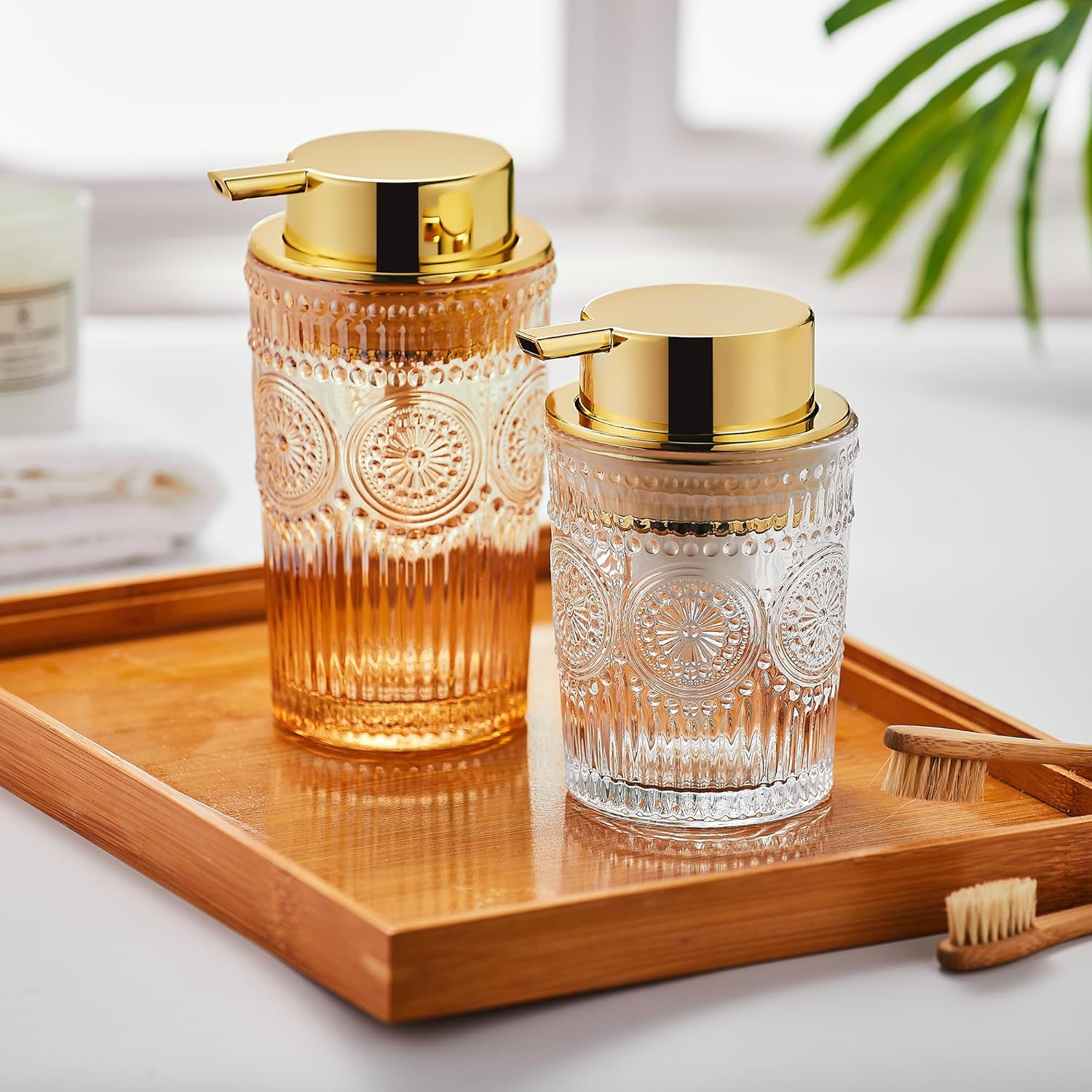Foaming Hand Soap Dispenser, Glass Toothbrush Holder, Refillable Liquid Lotion Dispenser (S-Clear-Foaming)