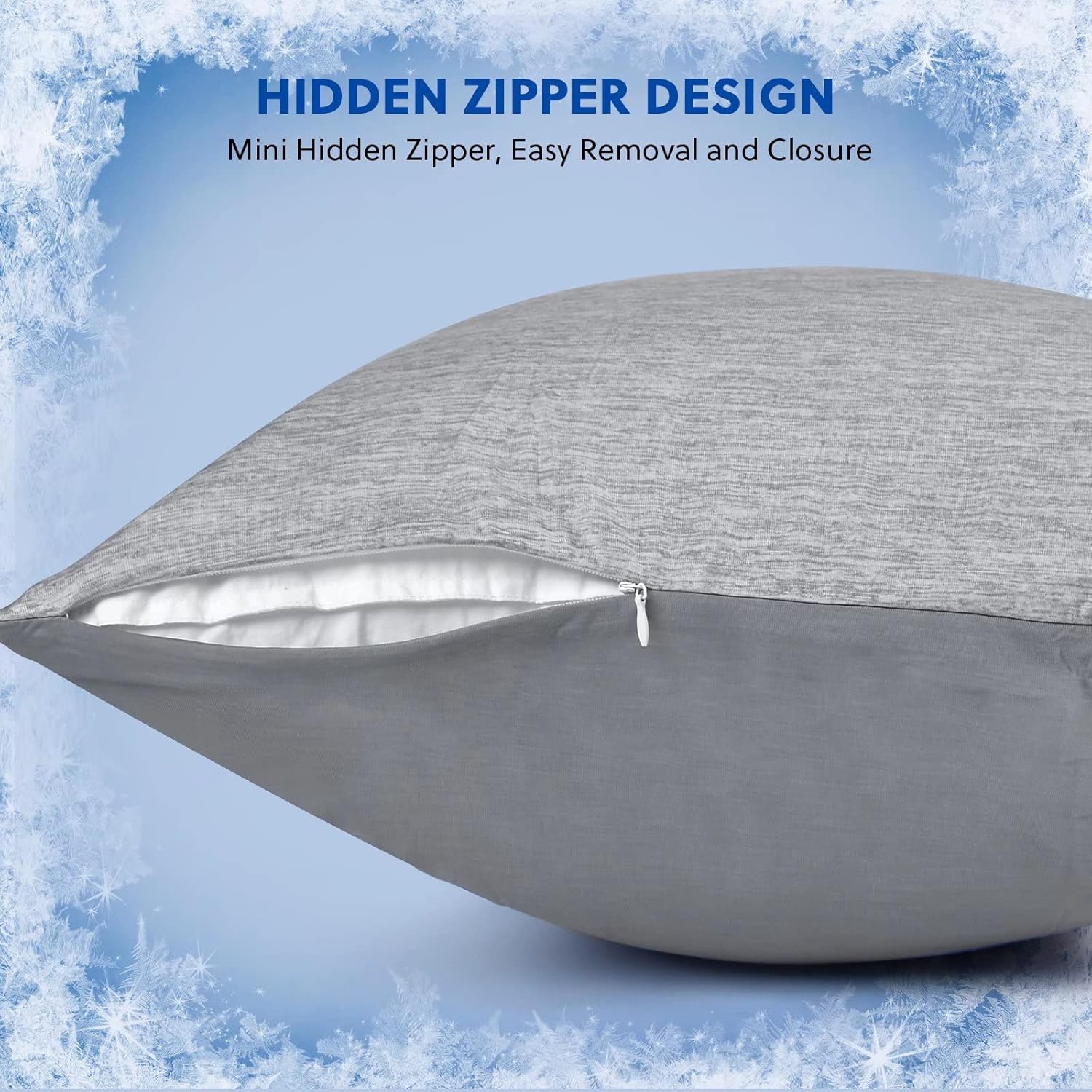 - ENHANCED COOLING - Different from other pillowcases with cooling fiber on the front + ordinary cotton on the back, our cooling pillow covers with double side enhanced cooling design. Both sides use premium cooling fibers and both side Q-Max>0.4. (Surface: 60% mica nyIon + 40% poIyethyIene, Back: 100% mica nyIon). Meanwhile cause we use larger size dense weave cooling fabric, the cooling feeling is greatly enhanced.