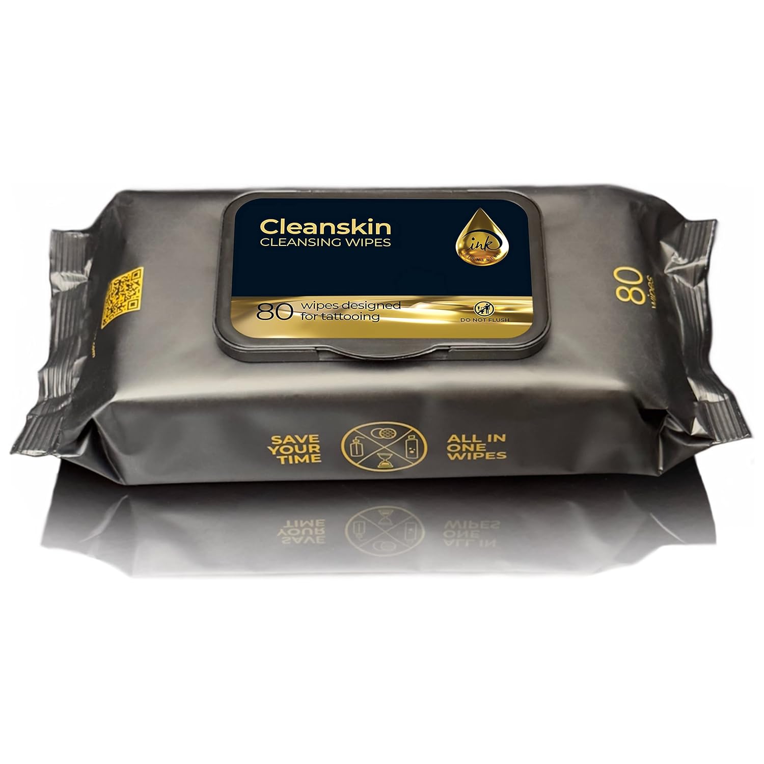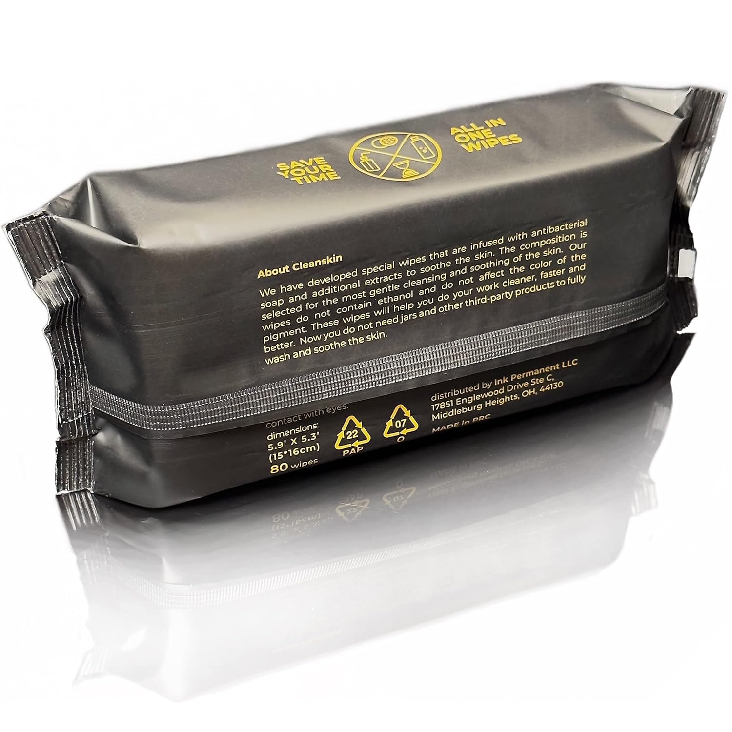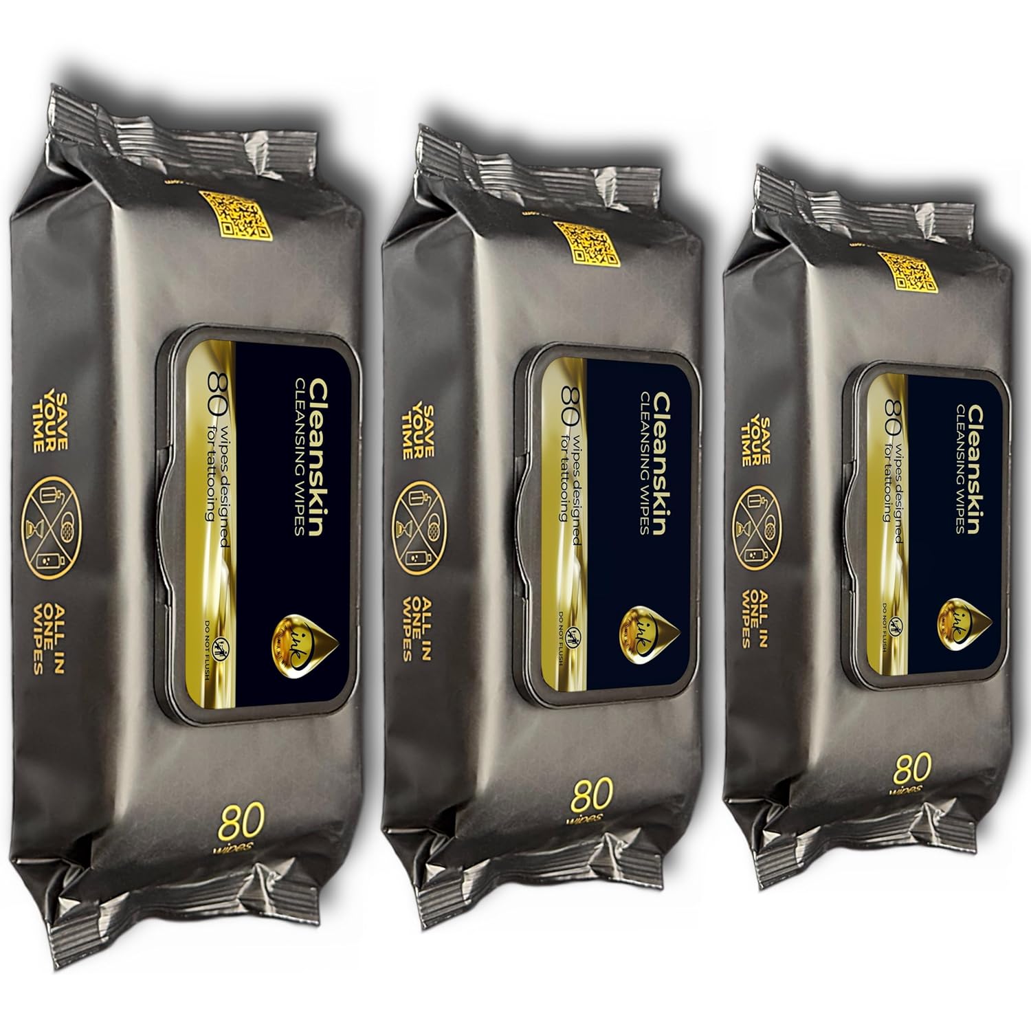 CleanSkin Cleansing Green Soap Wipes for Tattooing All in One Solution to Heal and Clean, Tattoo Soap for PMU & Piercing, Alcohol and Fragrance Free, Unscented, 80 Count (Pack of 3)
