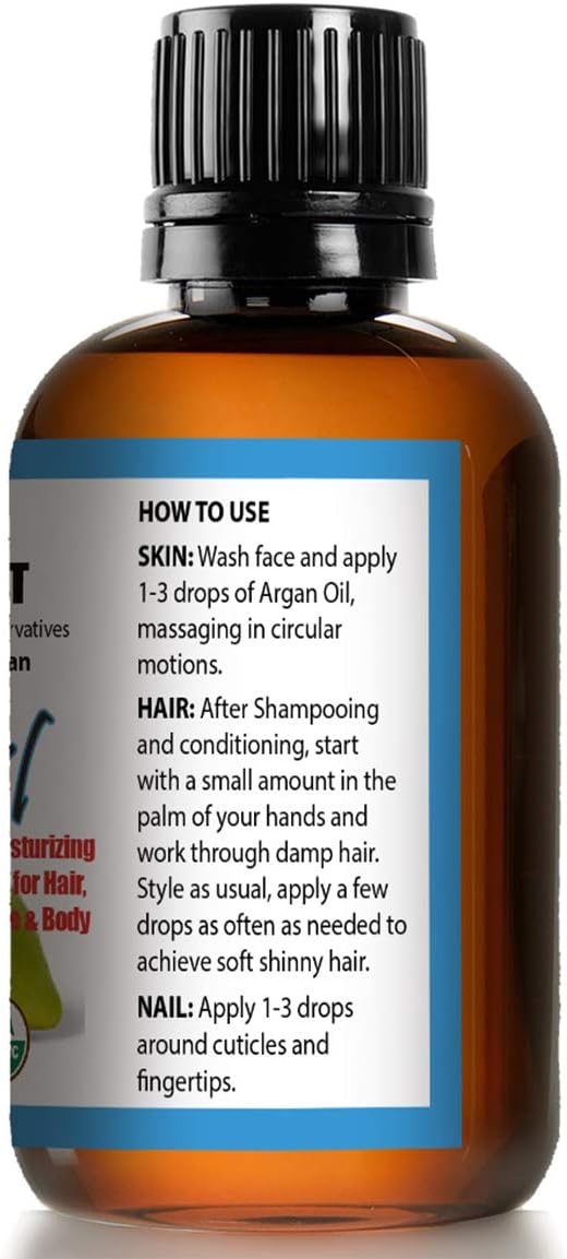 Pure Carrier and Essential Oils for Skin Care, Hair, Body Moisturizer for Face-Anti Aging Skin Care (Argan Oil Organic, 4oz)