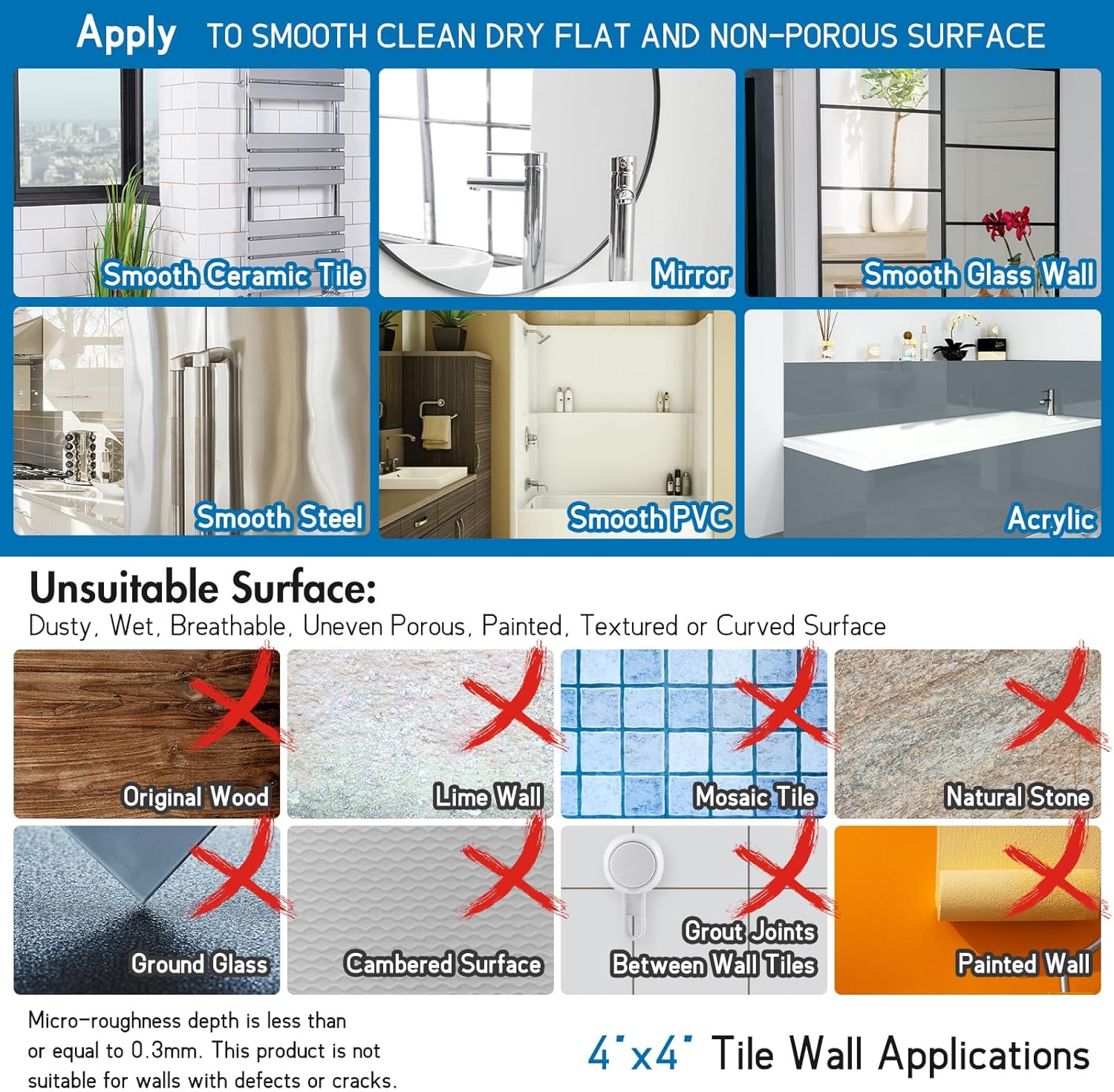 - Buying Guides: Please read this before you buy: (1) This shower Grab Bars is used to help support a person's body instead of stand full body weight. (2) Only works on tile size LARGER THAN 4x4". (3) CANNOT be applied over grout lines or textured surfaces. (4) Must be applied to smooth, flat, non-porous surfaces