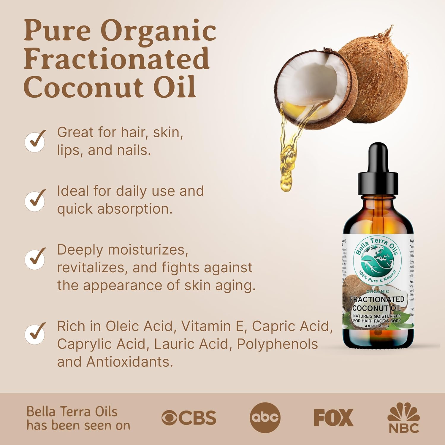 - ✔️ [Nature's Liquid Essence]: At its heart, our Organic Fractionated coconut oil is pure nature. Loved as a coconut oil for hair, body oil, and a go-to carrier oil, it's the essence of pure indulgence.
