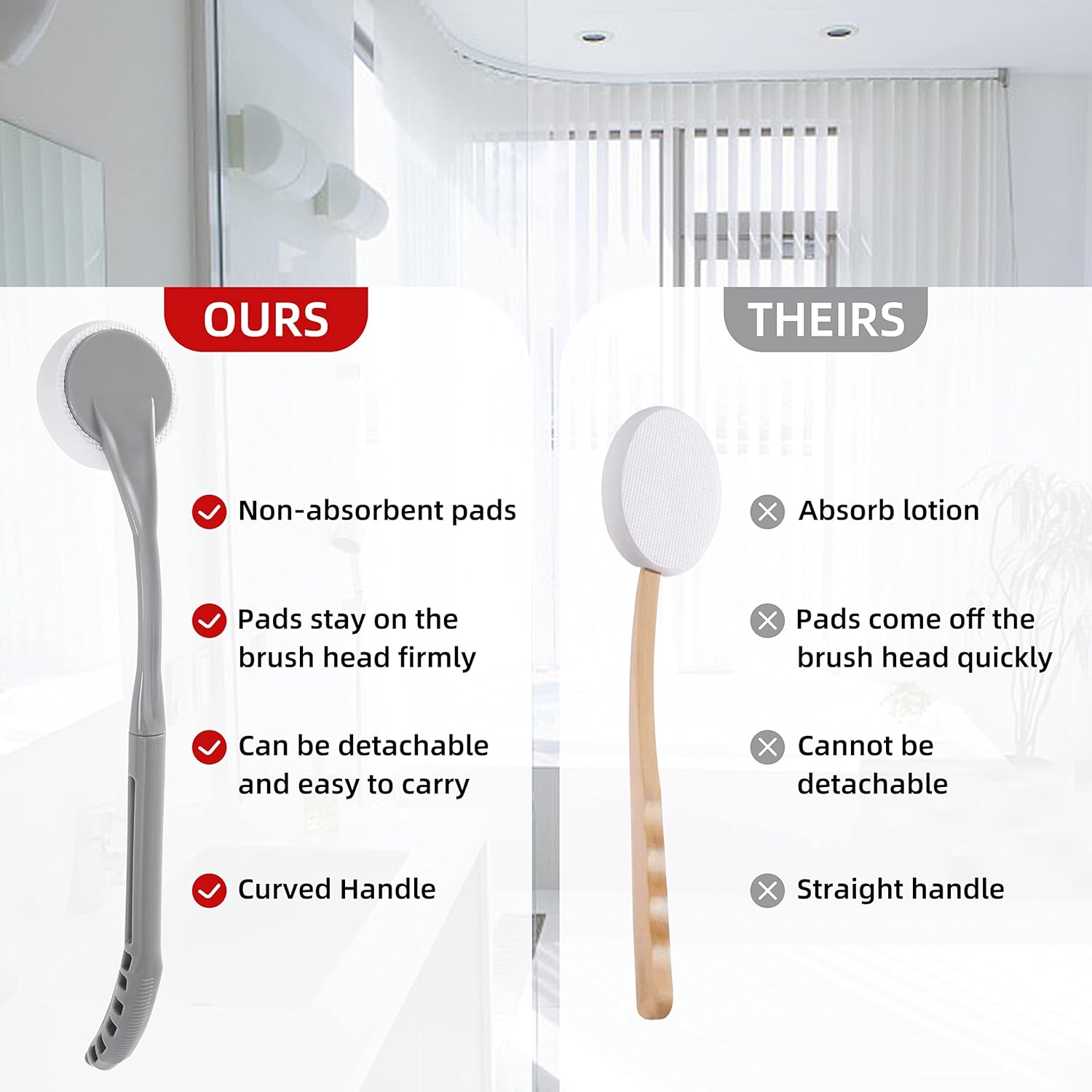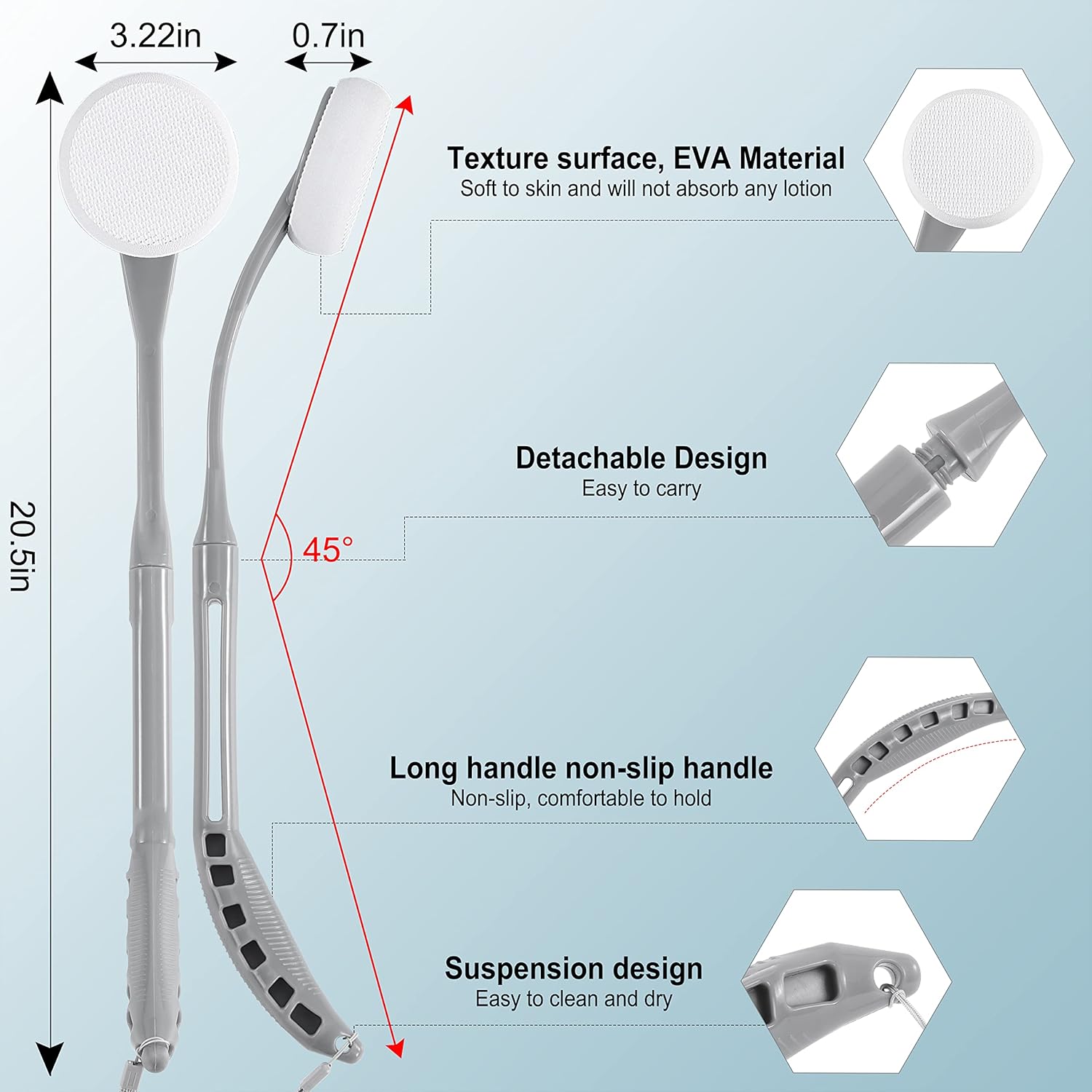 - 【Detachable Non-Slip Handle】- Unlike traditional straight-handled long-handled brushes, this 20.5-inch back applicator for lotion can be disassembled into two parts and can be taken anywhere. The non-slip thickened handle provides a comfortable and firm grip, fits the curve of the human body and fits better on the back, so you don't have to worry about slipping when using it