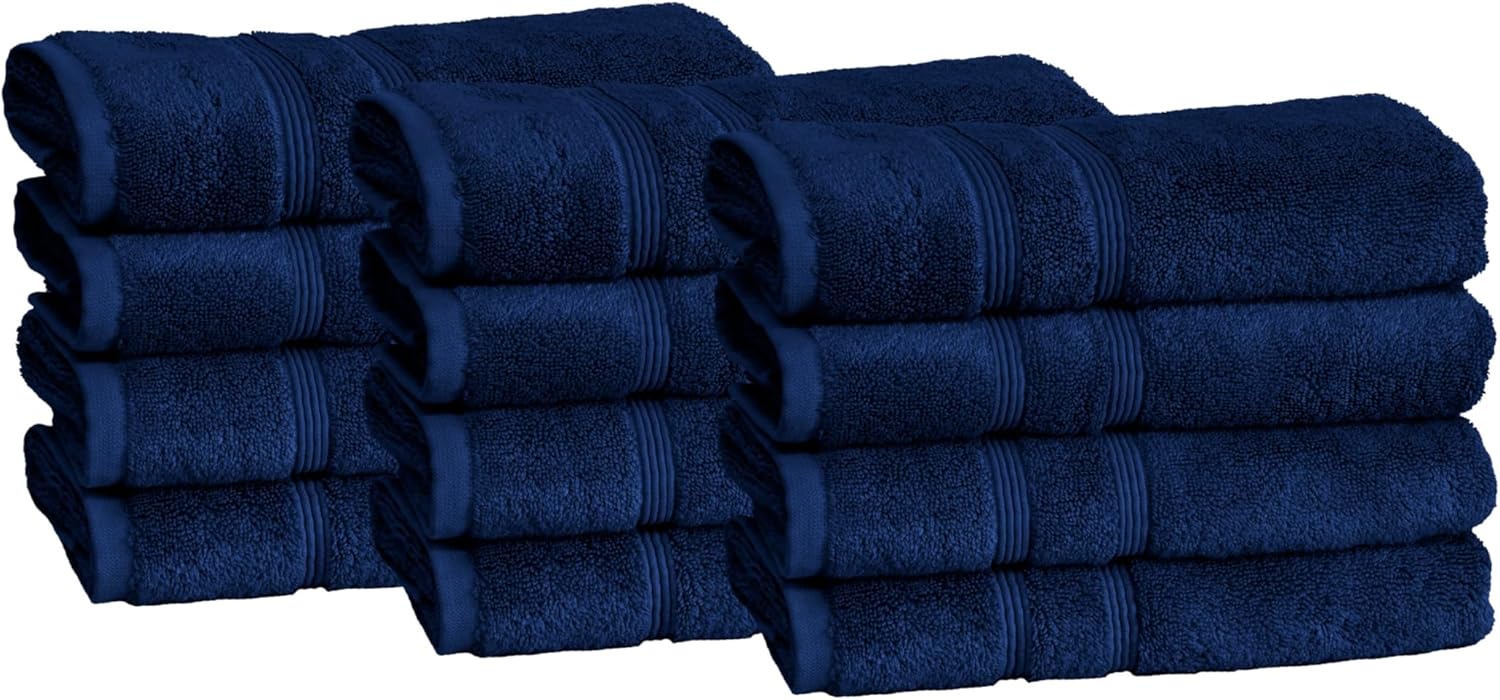 Mosobam Luxury Turkish Set of 12 Hand Towels 16X30 Navy Blue 700 GSM Bamboo Viscose & Aegean Turkish Combed Cotton