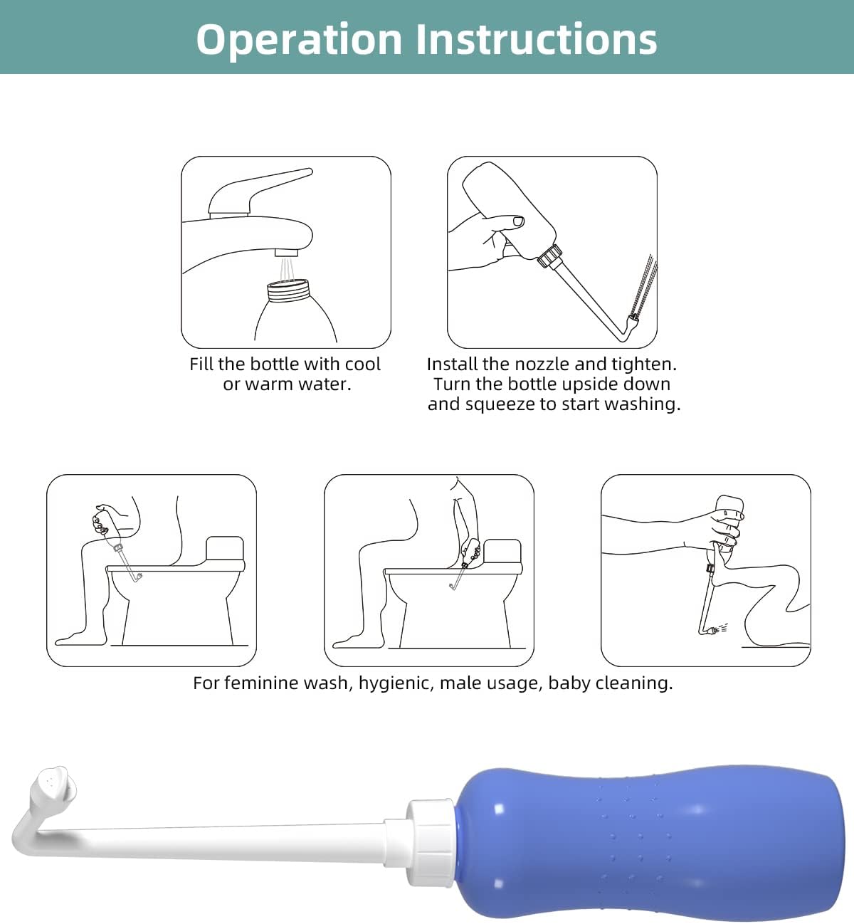 - Easy to use: No power, no battery. Simply fill with cool or warm water and squeeze bidet bottles, you will enjoy a soothing spritz of freshness in your first postnatal months,and conserve toilet papers. Portable bidet for travel is suitable for when you're on the go and you want to take the benefits of a bidet with you.