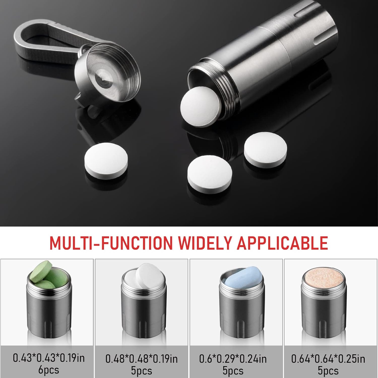 - Easy to Carry: This pill titanium bottle comes with an extra small key clip. We can easily clip them on the handbag or belt through the key ring when we go out