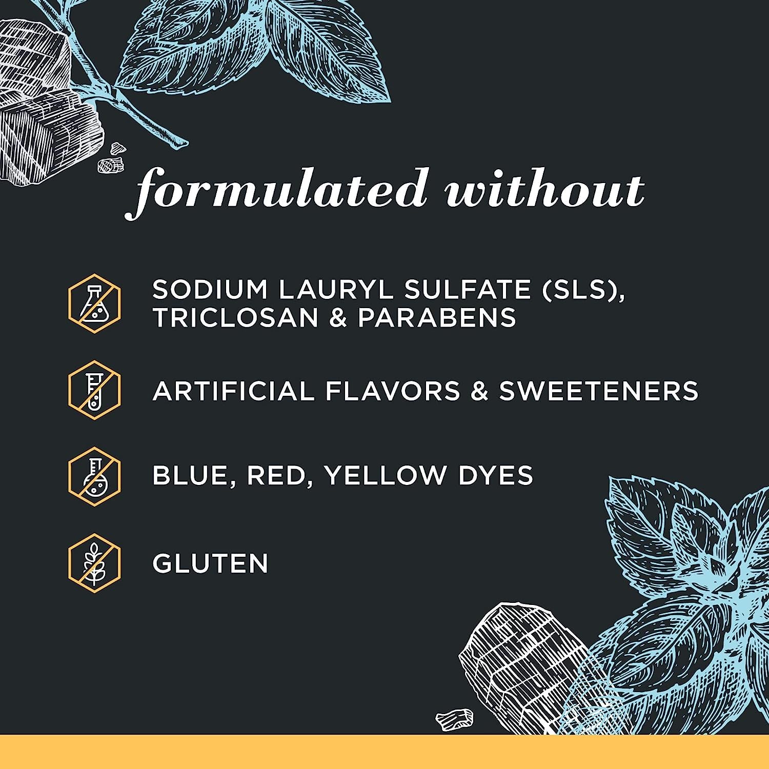 - Made Without: Sodium Lauryl Sulfate (SLS), Triclosan & Parabens, Artificial Flavors & Sweeteners, Preservatives & Blue, Red, Yellow Dyes, Plastic Microbeads
