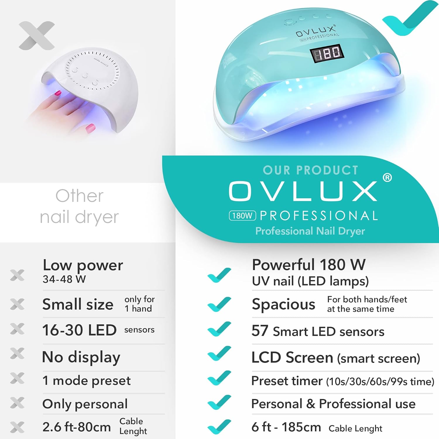 OVLUX 180W UV LED Nail Lamp - Professional Fast Nail Dryer for Gel Polish with 57 LEDs, Auto Sensor, LCD Display, 4 Timer Settings, Cures Fingernails & Toenails, for All Gel Types - Color Tiffany