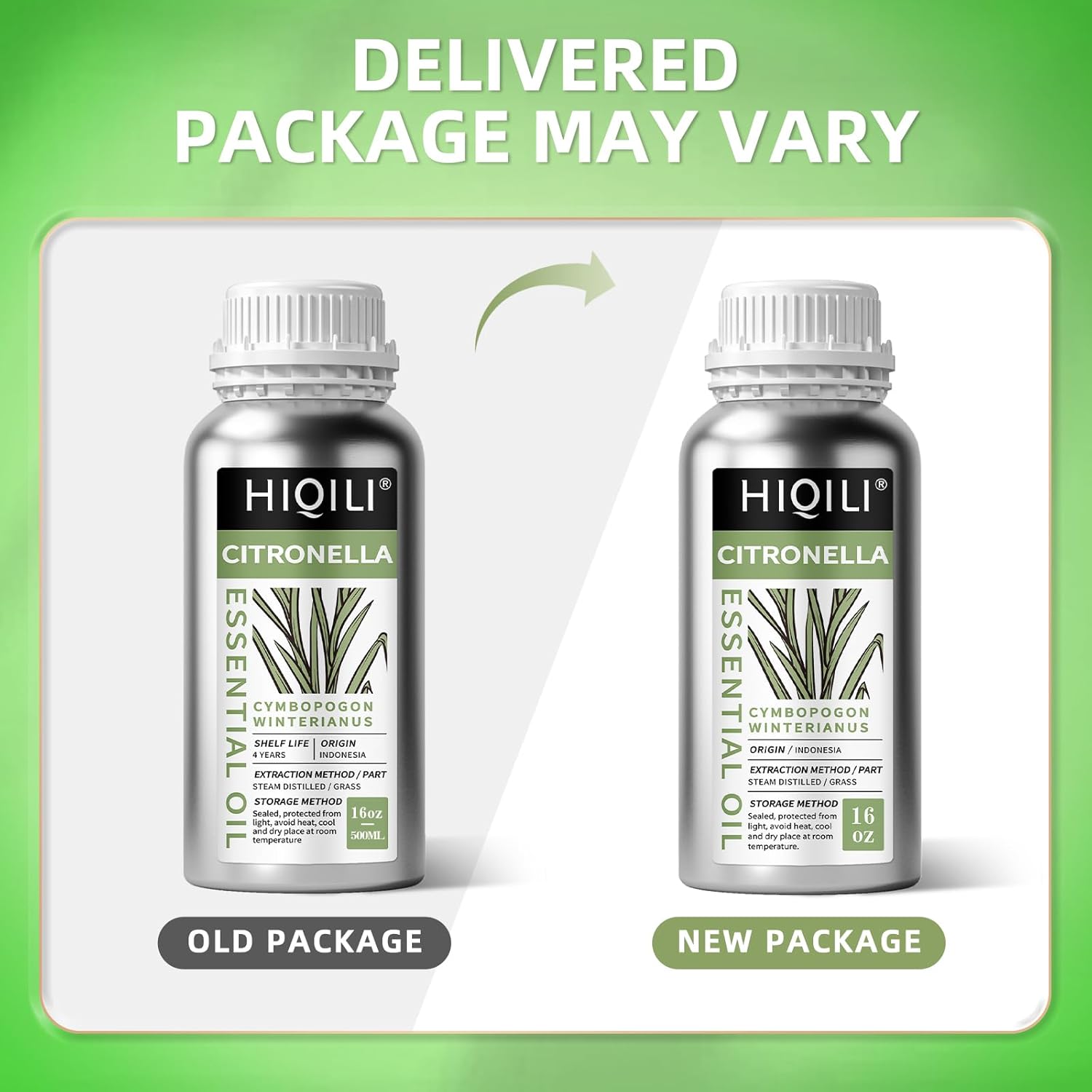 HIQILI 16 Fl Oz Citronella Oil for Homemade Sprays, Add to Diffuser, 100% Pure and Natural Undiluted