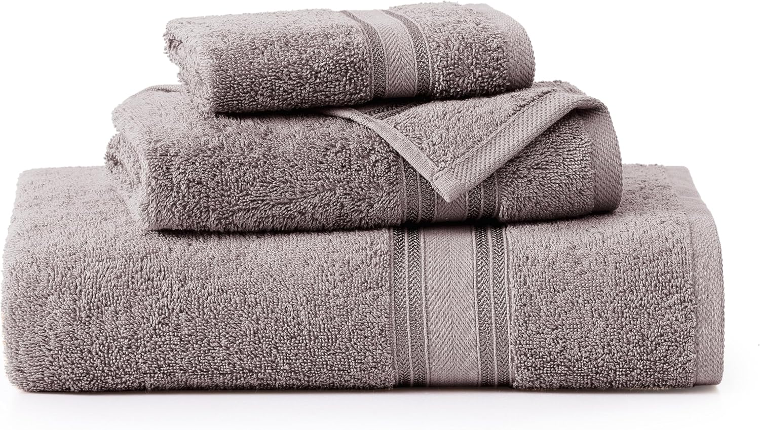 LANE LINEN Luxury Bath Towels Set - 3 Piece 100% Cotton Bathroom Towels, Quick Dry, Extra Aborbent, 1 Hand Towel, 1 Wash Cloths, 1 Bath Towel: Platinum