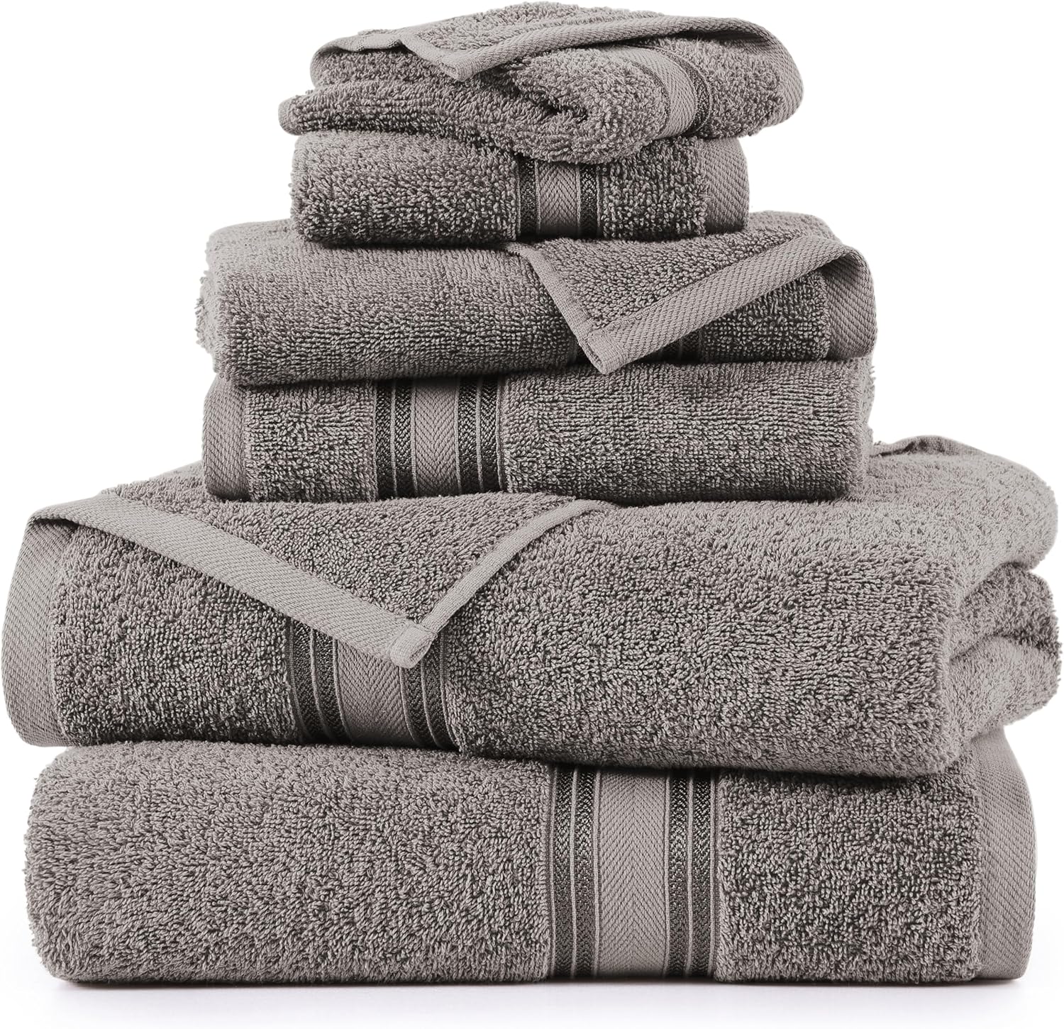 LANE LINEN Luxury Bath Towels Set - 6 Piece 100% Cotton Bathroom Quick Dry Shower Extra Aborbent Towel Super Soft 2 Hand Wash Cloths Space Grey