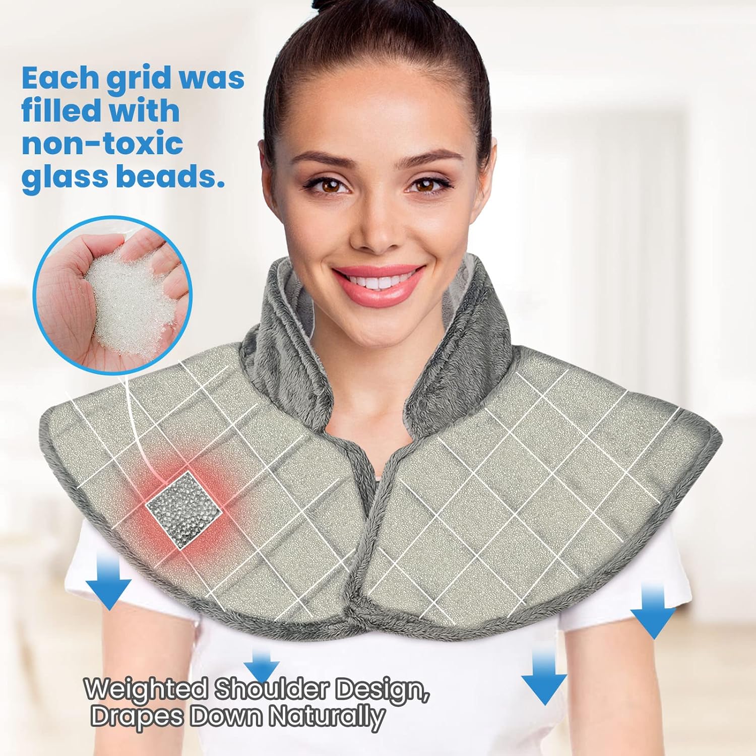 - 【Full Weighted Heating Pad for Neck, Shoulders & Back】: We sew 3lb non-toxic micro glass beads in the small pocket through out the whole back heating pad , which can keep the electric heating pad more close to your neck , shoulder and back, and ensuring even heat distribution for maximum comfort. Note: Please don’t lie on it or lean on it when using it.