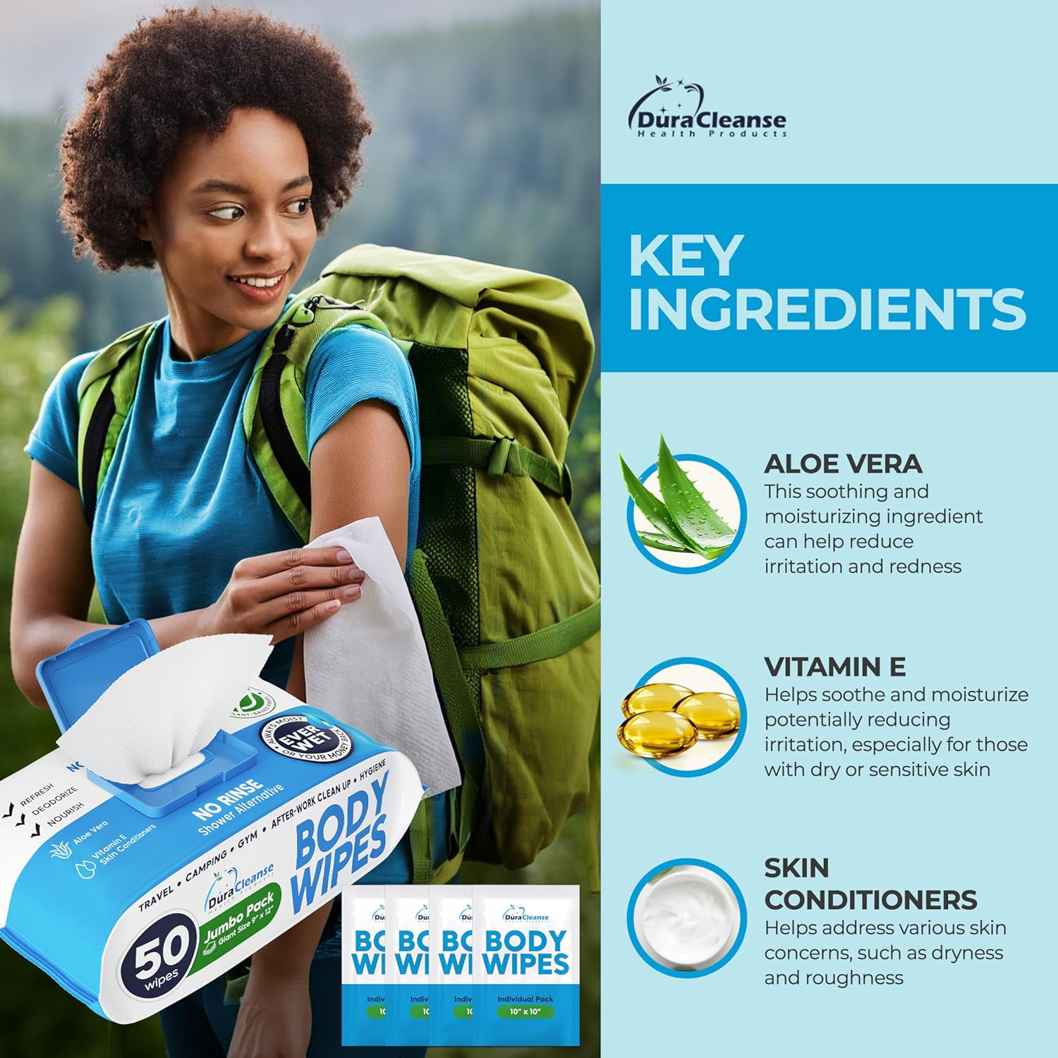 - Feel & Texture: Experience the softness and nourishing benefits of our embossed body wash cloths, made with sustainable fibers and enriched with Aloe Vera and Vitamin E. Our extra moist, rinse-free bath wipes with an advanced resealable lid stay fresh and won't dry out . Perfect for whole-body cleaning for elder care, bedridden patients, adults, toddlers, and babies, these gentle body wash wipes maintain skin health and vitality. They are microwavable for easy warming when used for babies.