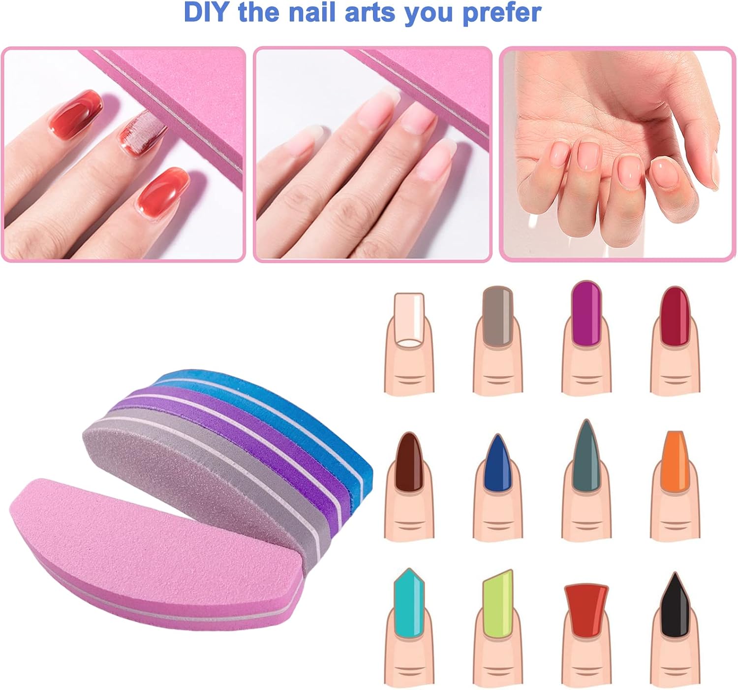 Nail Buffers (40 pcs), Buffer Block Nail Files Bulk for Acrylic Nails and Natural Nails Double Sided 100/180 Grit Portable Washable Sanding Buffing Buffers Arc Shape (40Pcs Multicolor)