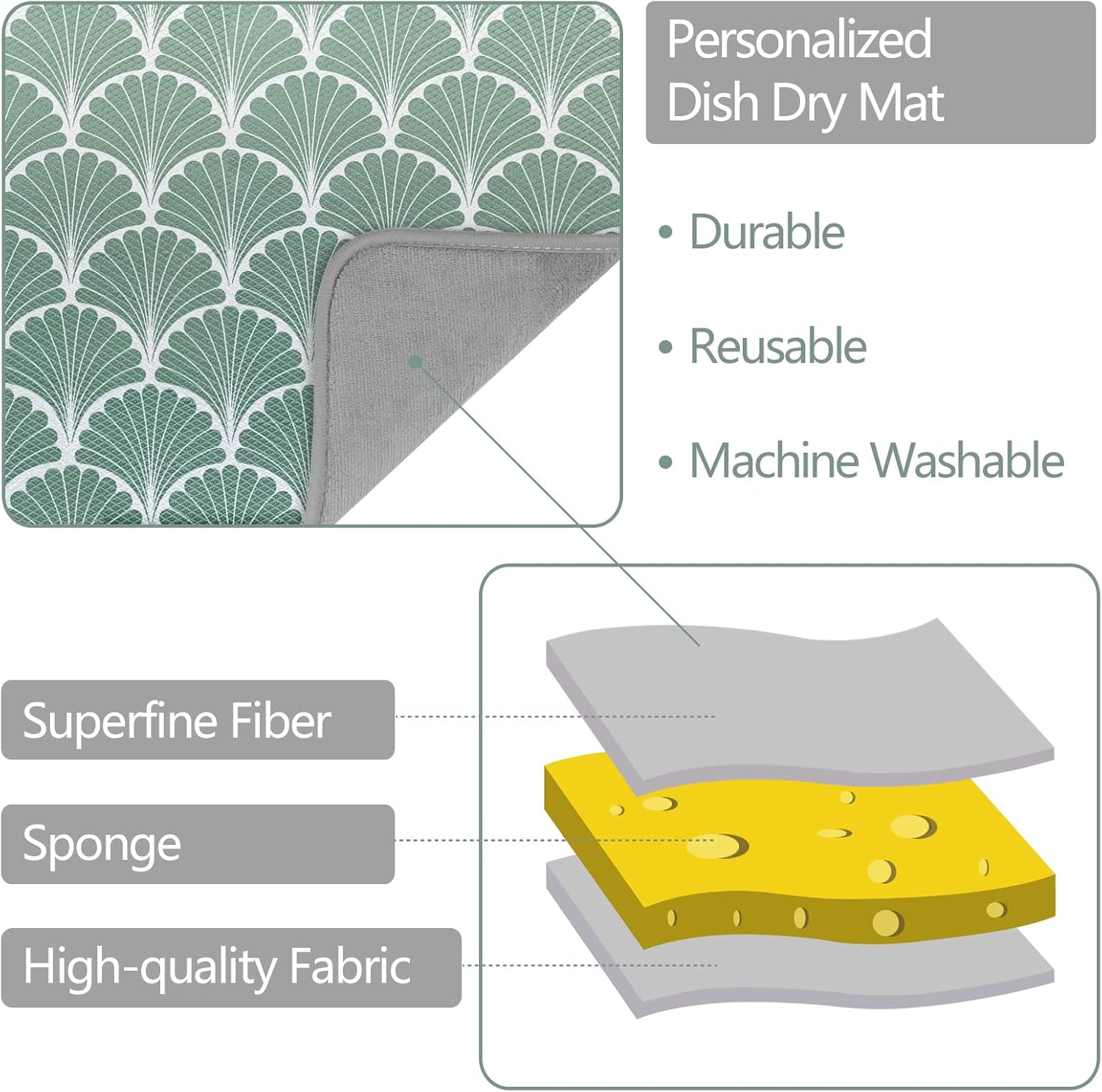 SHIYUE Dish Drying Mat for Kitchen Counter Super Absorbent Spring Kitchen Decor Microfiber Drying Matainers Rack Fast Pad Dish Drainer Mats(Green Shell Geometric,18''x24'')