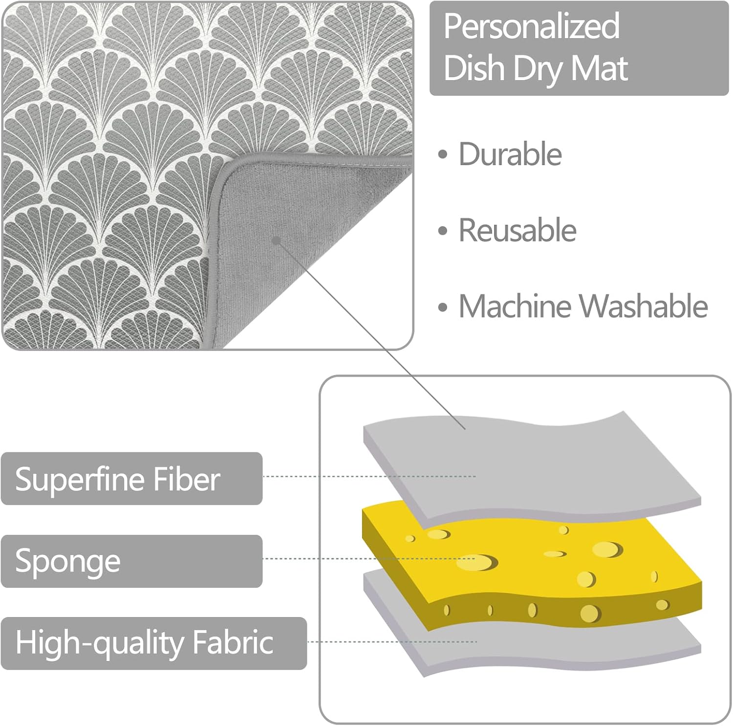 SHIYUE Dish Drying Mat for Kitchen Counter Super Absorbent Spring Kitchen Decor Microfiber Drying Matainers Rack Fast Pad Dish Drainer Mats(Grey Shell Geometric,16''x18'')