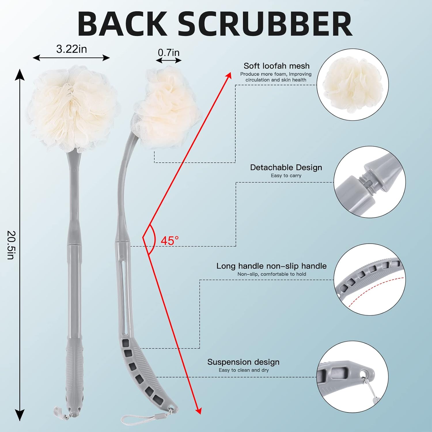- 【Detachable Non-Slip Handle】- Unlike traditional straight-handled long-handled brushes, this 20.5-inch back loofah can be disassembled into two parts and can be carried anywhere. The non-slip padded handle provides a comfortable and secure grip that conforms to the curves of the body, allowing you to thoroughly clean your body without painful bending or twisting. Especially in hard-to-reach corners such as the back, feet, and elbows