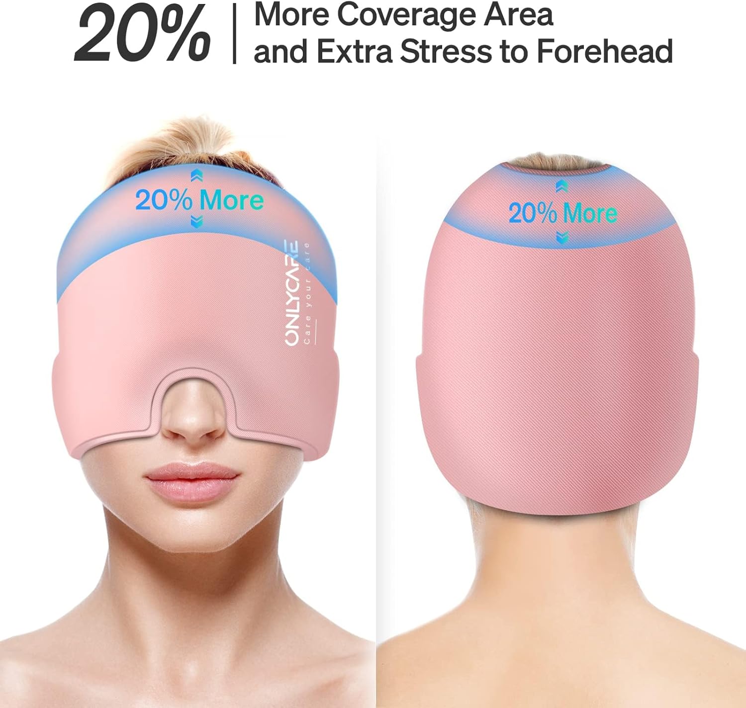 ONLYCARE Migraine Relief Cap, Upgraded Odorless Migraine Ice Head Wrap, Headache Relief Hat for Migraine, Slight-Pink