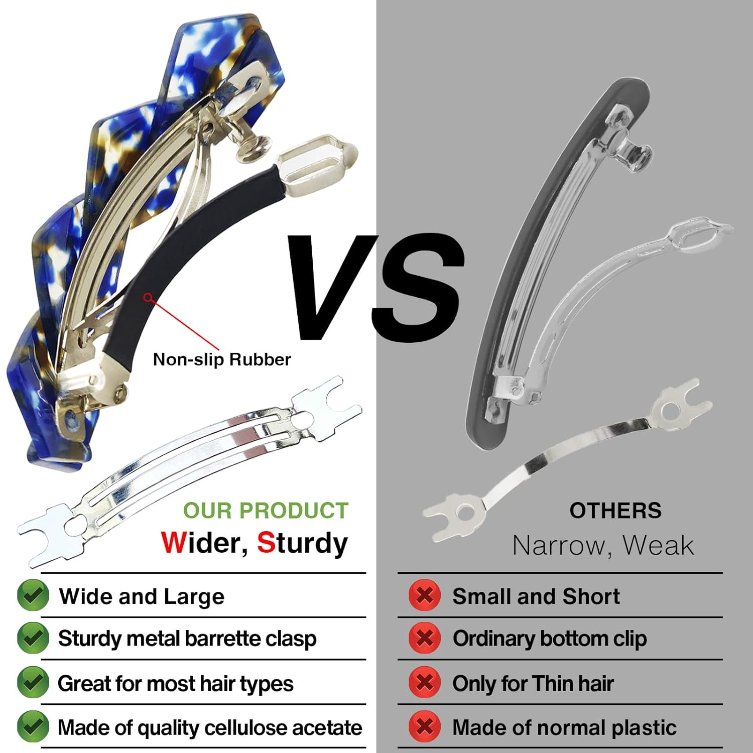 - 【Comfortable and Non-Snagging】Constructed with a larger size and comfortable material, these barrettes keep your hair in place without causing any discomfort, tangles or snags.