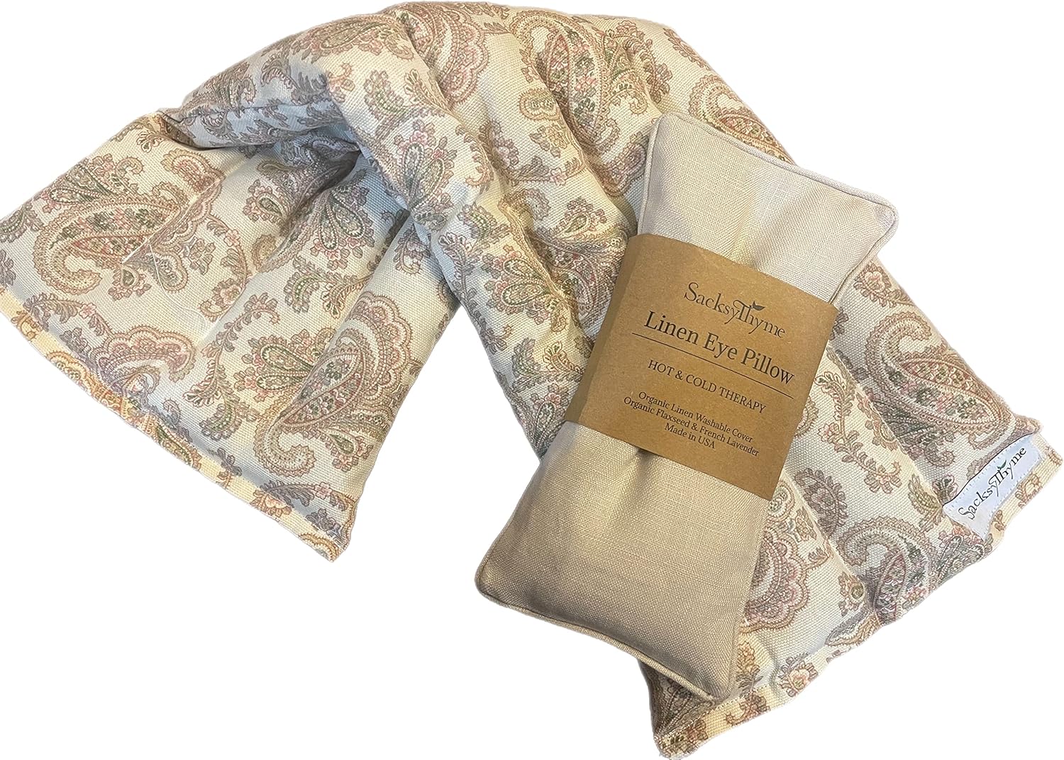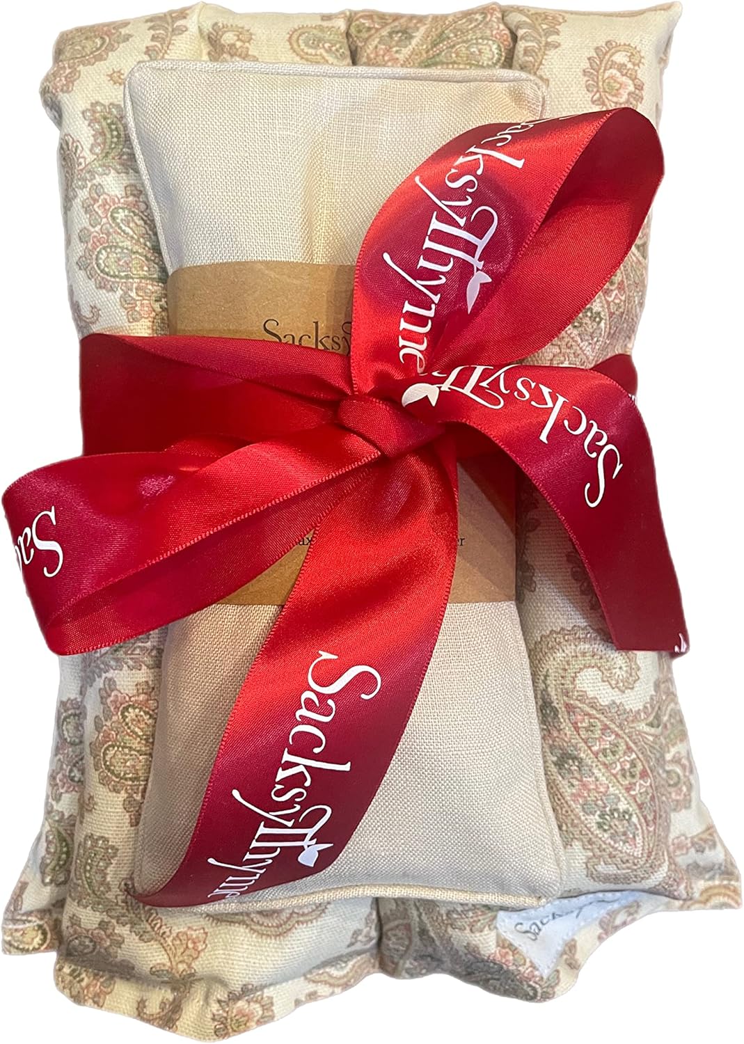 - EASY TO USE: Enjoy the convenience of Sacksy Thyme's easy-to-use aromatherapy heating pad. Simply place the cherry pit and flaxseed-filled pad in the microwave for just 90 seconds, and experience the soothing relief it provides. natural heating pad is designed to alleviate various discomforts such as muscle aches, back pain, neck and shoulder pain, cramps, and stress.